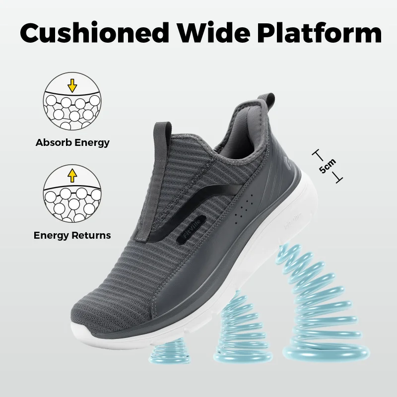 FitVille Mens Wide Fit Slip On Trainers נעלי הליכה ברוחב רחב במיוחד, ריבאונד גבוה