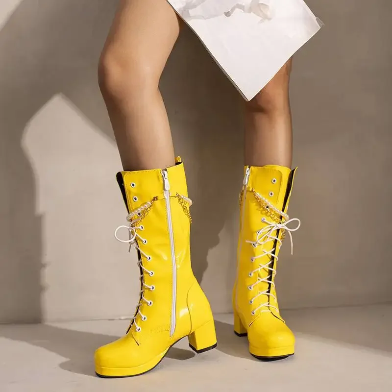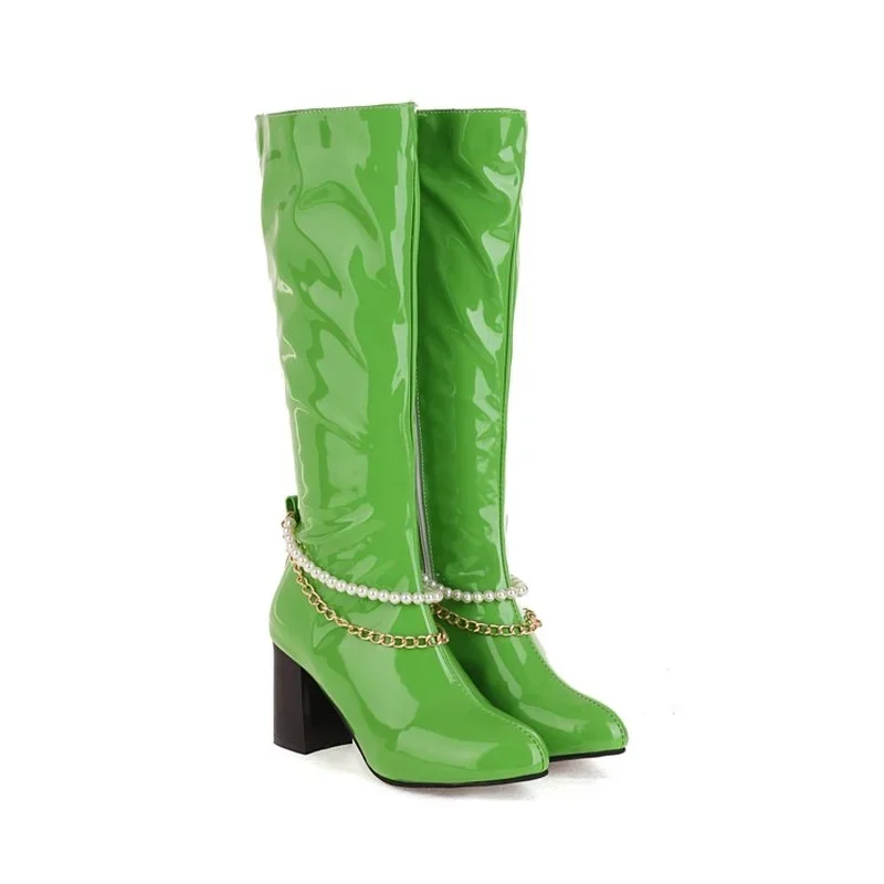 העקב עבה חדש 5 ס "מ מגפי נשים עגולות צבע ממתקי פנינה צד רוכסן טוב 16 צבע מגפי גודל מגפי גודל 30-48