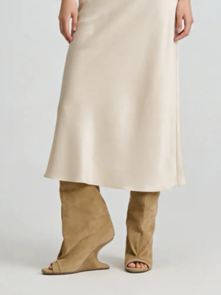 מגפיים קצרים חדשים עם עקב עבה וגבוה, פתוחים מקדימה, אופנתיים, עקב דמוי זר, פתח דמוי פה דג, מגפיים מגניבים לאביב/קיץ, מגפיים קצרים לנשים