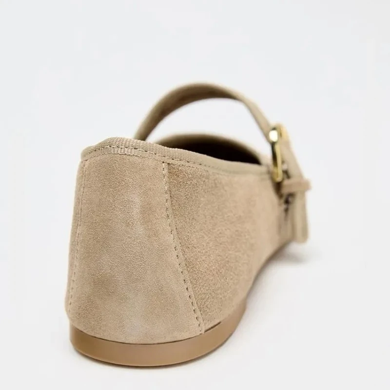 נעלי בלט סאטן נוחות עם סוליית רך לנשים, קדמה עגולה, נעלי מרי ג'יין שטוחות, סגירת רצועה צרה, מידה גדולה