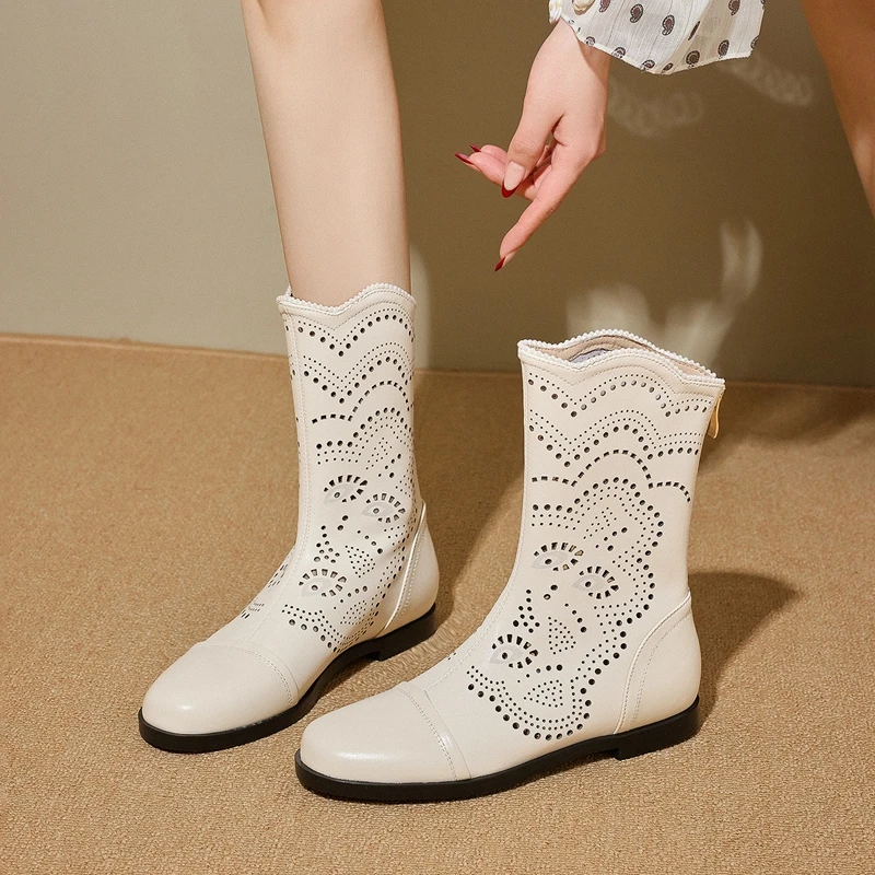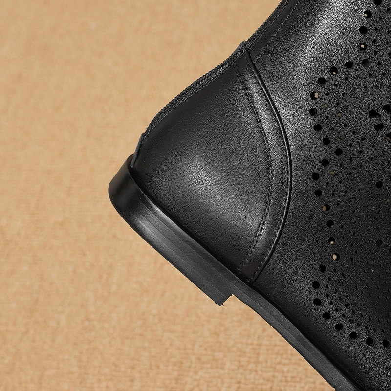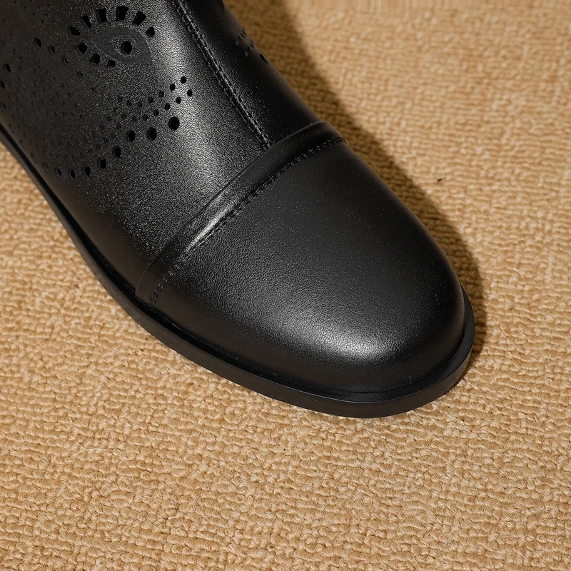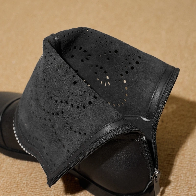 נעלי נשים חדשות באביב ובקיץ מעור פרה אמיתי עם עקב נמוך, מידה גדולה, רוכסן אחורי, מגפיים קצרים, מגפיים מגניבים