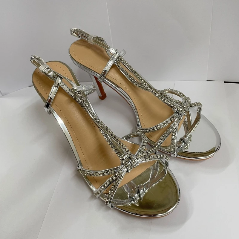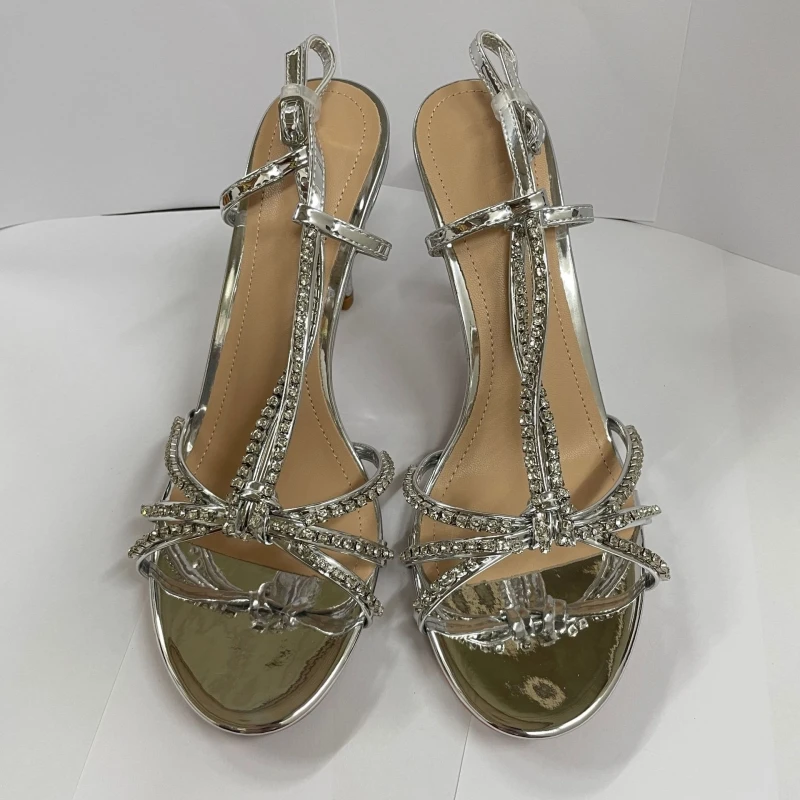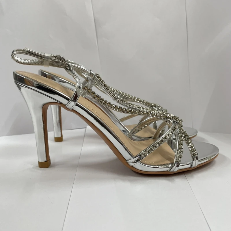 נעלי סנדלי עקב גבוהות לנשים לקיץ עם אבן חן, סנדלי רומאיים עם פתח פתוח, סטילטו סקסי עם עקב גבוה, נעלי סלינגבק