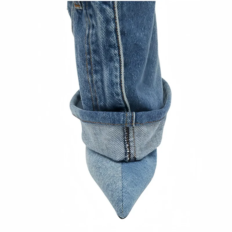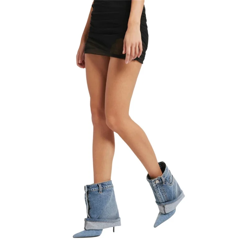 נעלי קרסול לנשים עם מכנסי ג'ינס, נעלי עקב חדשות לסתיו וחורף עם קדמה מחודדת ועקב גבוה, נעלי נשים בסגנון אופנה
