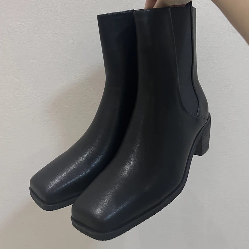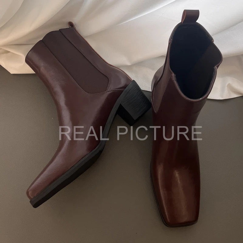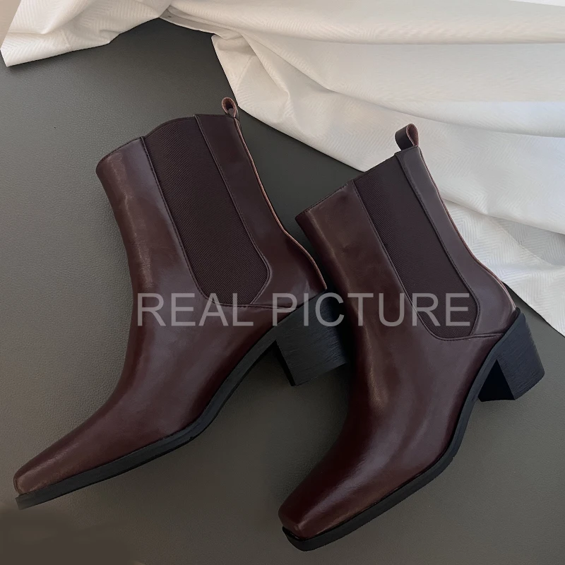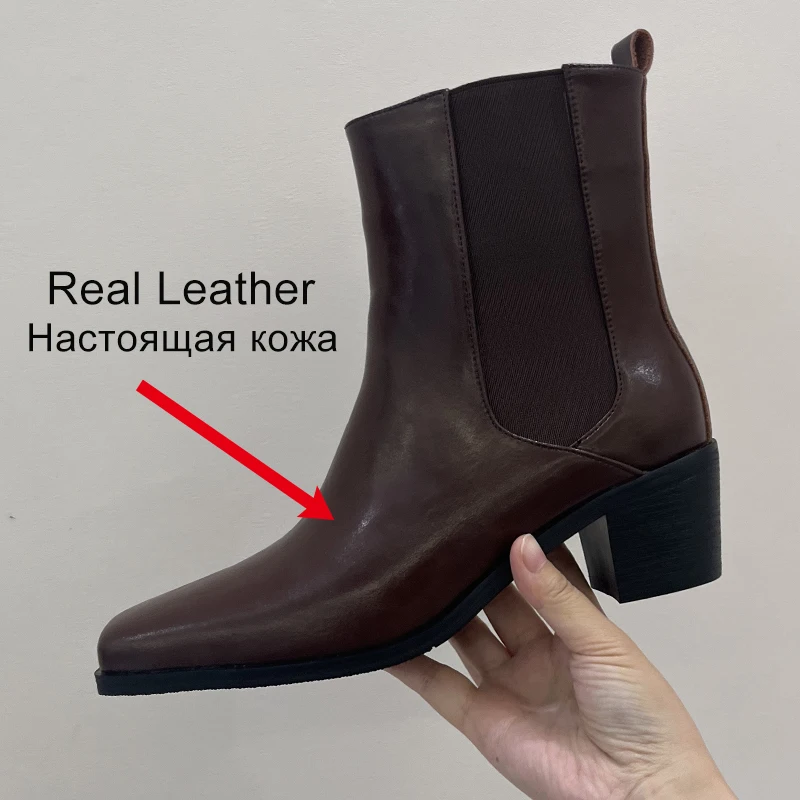נעלי JOZHAMTA מידה 34-43 לנשים מעור אמיתי עם עקב עבה, קצה ריבועי, עקב גבוה, נעלי קצרות לנשים בסגנון אופנה