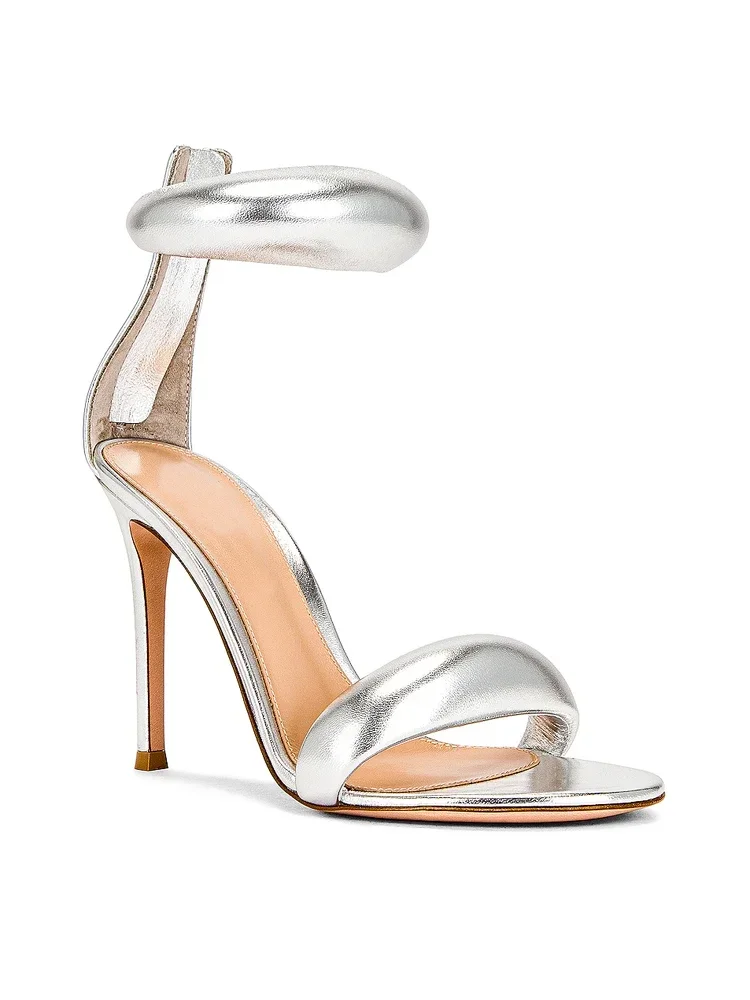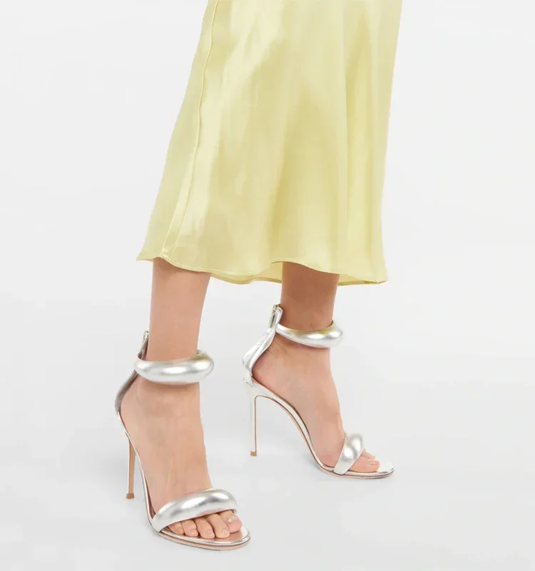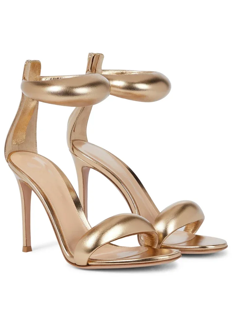 סנדלים נשים חדש בקיץ סנדלים 3D טרנדי עור אמיתי זהב פתוח הבוהן קו אחד העקב גבוה רזה סנדלים העקב