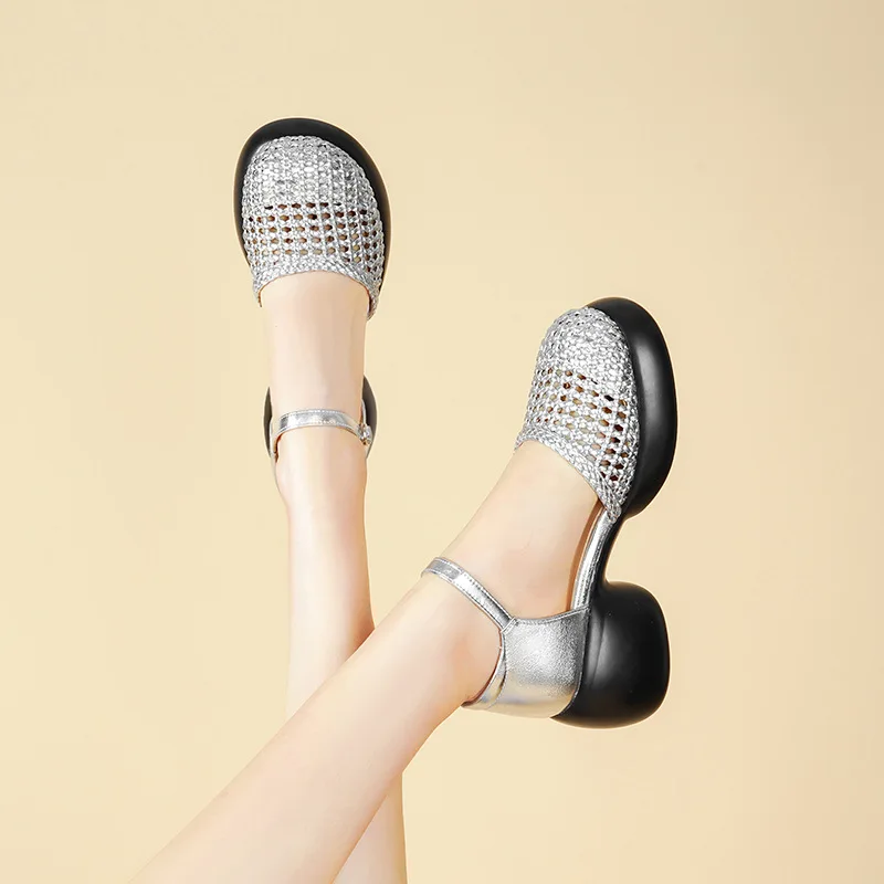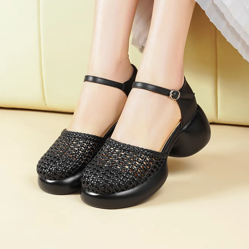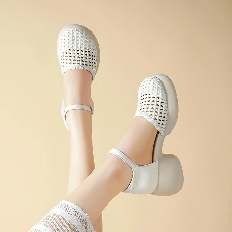 סנדלי נשים AIYUQI רטרו 2026 קיץ חדש סנדלים רומיים לנשים במידות גדולות ארוגים נעלי עקב חלולות לנשים