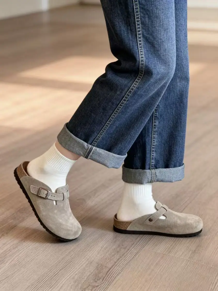 סנדלי קרוקס מעור אופנתיים חדשים לשנת 2026, כפכפי פלטפורמה לגברים, נעלי חוף נוחות בסגנון רטרו, נגד החלקה, עם קופסה.