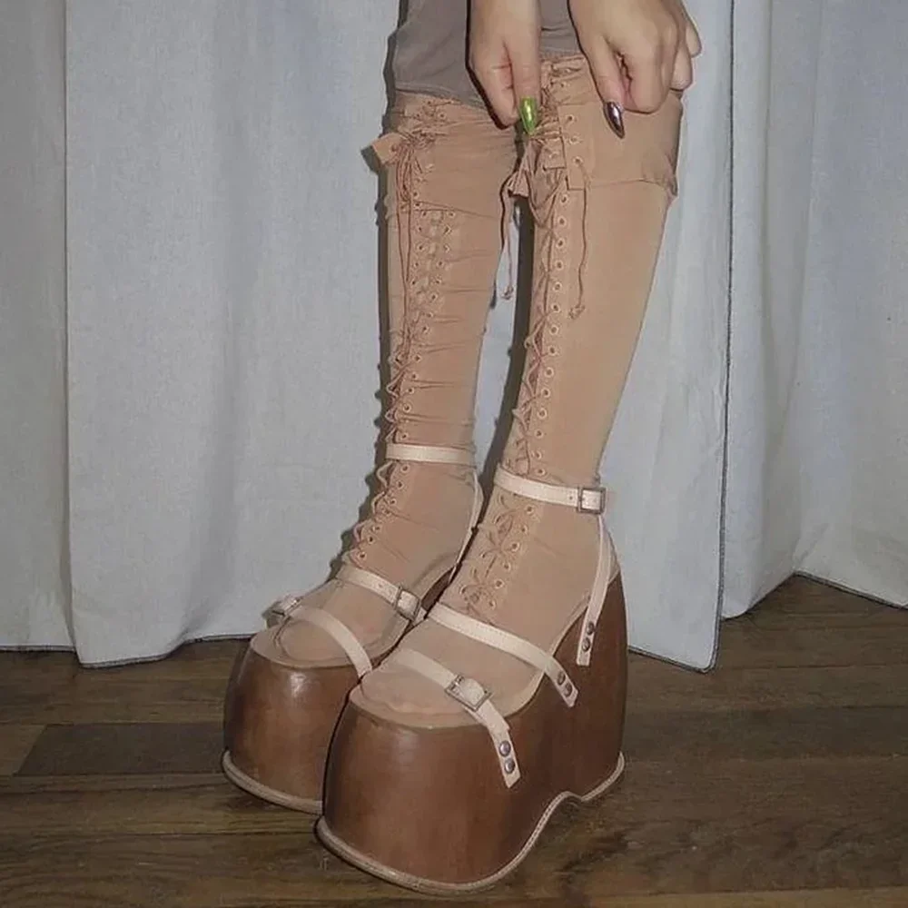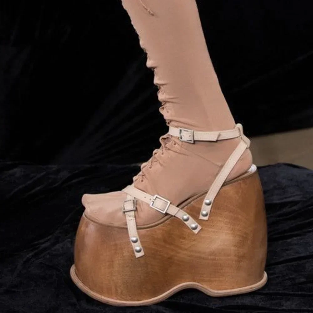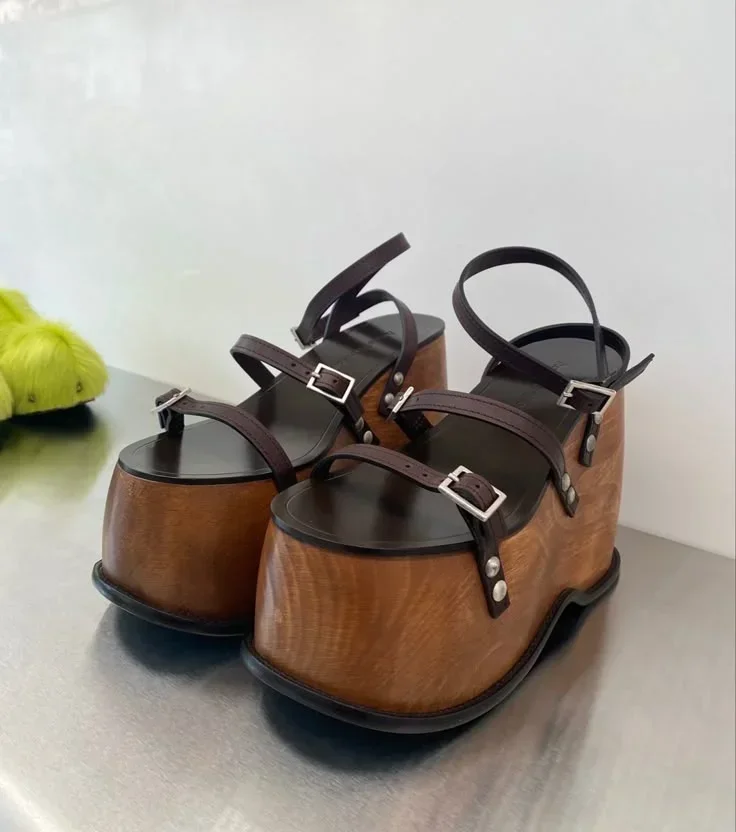 פלטפורמה סקסי טריז העקב נשים משאבה 2025 פתוח חגורת הבוהן אבזם גוף חדש עקבים גבוהים רחוב אופנה מסיבת אבזם סנדלים
