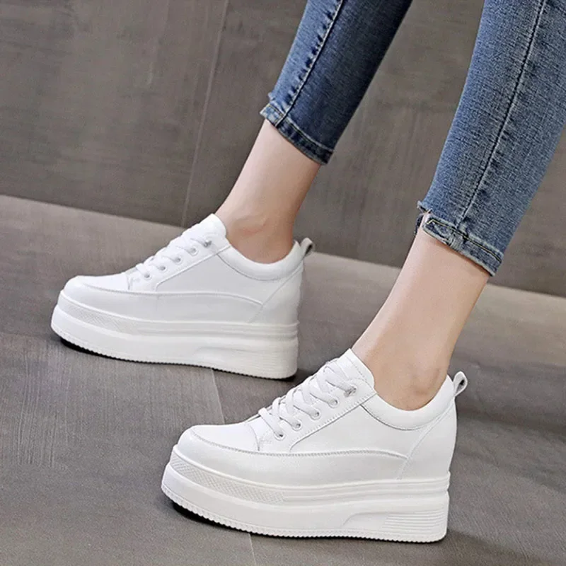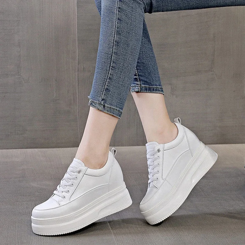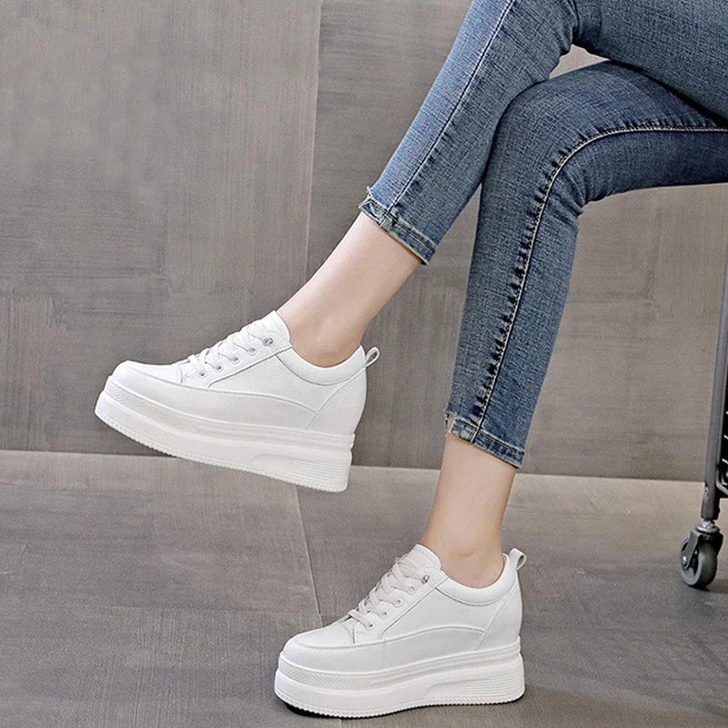 2025 באביב סתיו נעלי עור אמיתיות נשים דירות פלטפורמה אלגנטית נשים גובה הגדלת נעליים 8 ס "מ שחור לבן yx48350