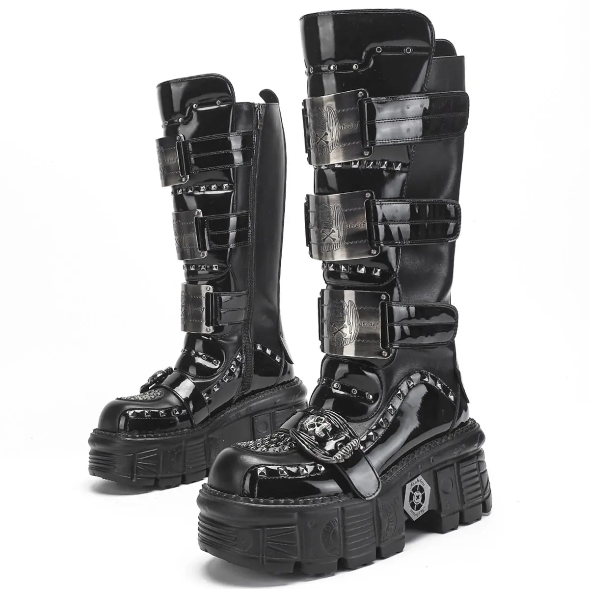 2025 נשים עבה-מולחם פרמיה מתכת כהה ארוך משקל קל רוק פאנק באמצע גובה פלטפורמה
