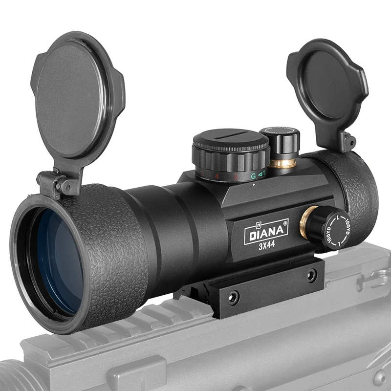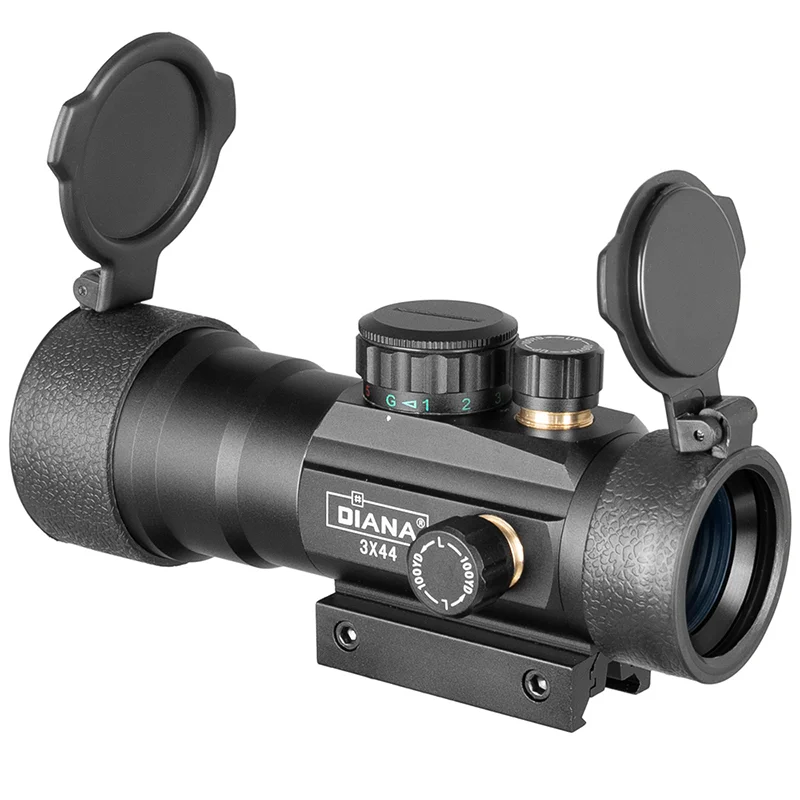 משקפת הולוגרפית DIANA 3×44 עם נקודה אדומה מתכווננת, תצוגה רחבה וראיית HD לחוץ