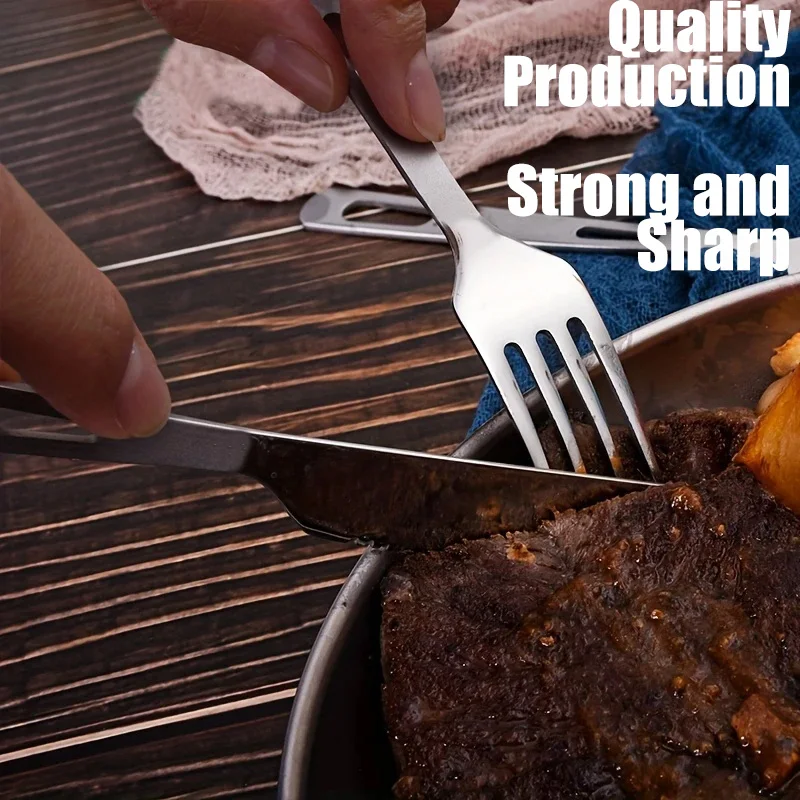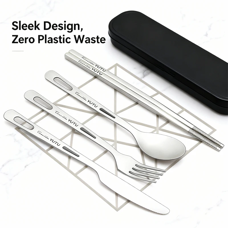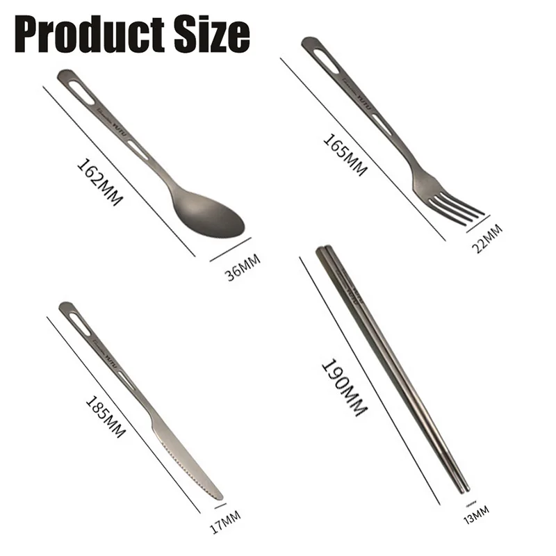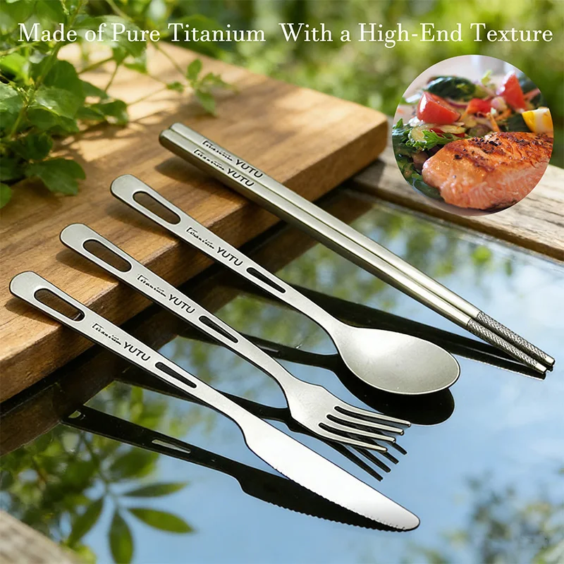 סט כלי אוכל ניידים מטיטניום טהור בן 4 חלקים - כלי אוכל מערביים עם מקלות אכילה לקמפינג בחוץ, לנסיעות ולשימוש ביתי יומיומי