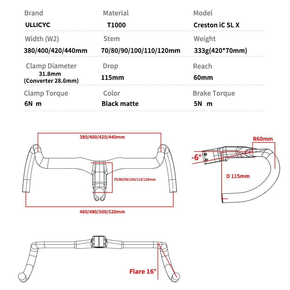 כידון כביש ULLICYC Creston IC Sl x עם ניתוב כבלים פנימי מלא, T1000 קרבון, תא נהג משולב לכביש/גראבל, Di2 עם תושבת