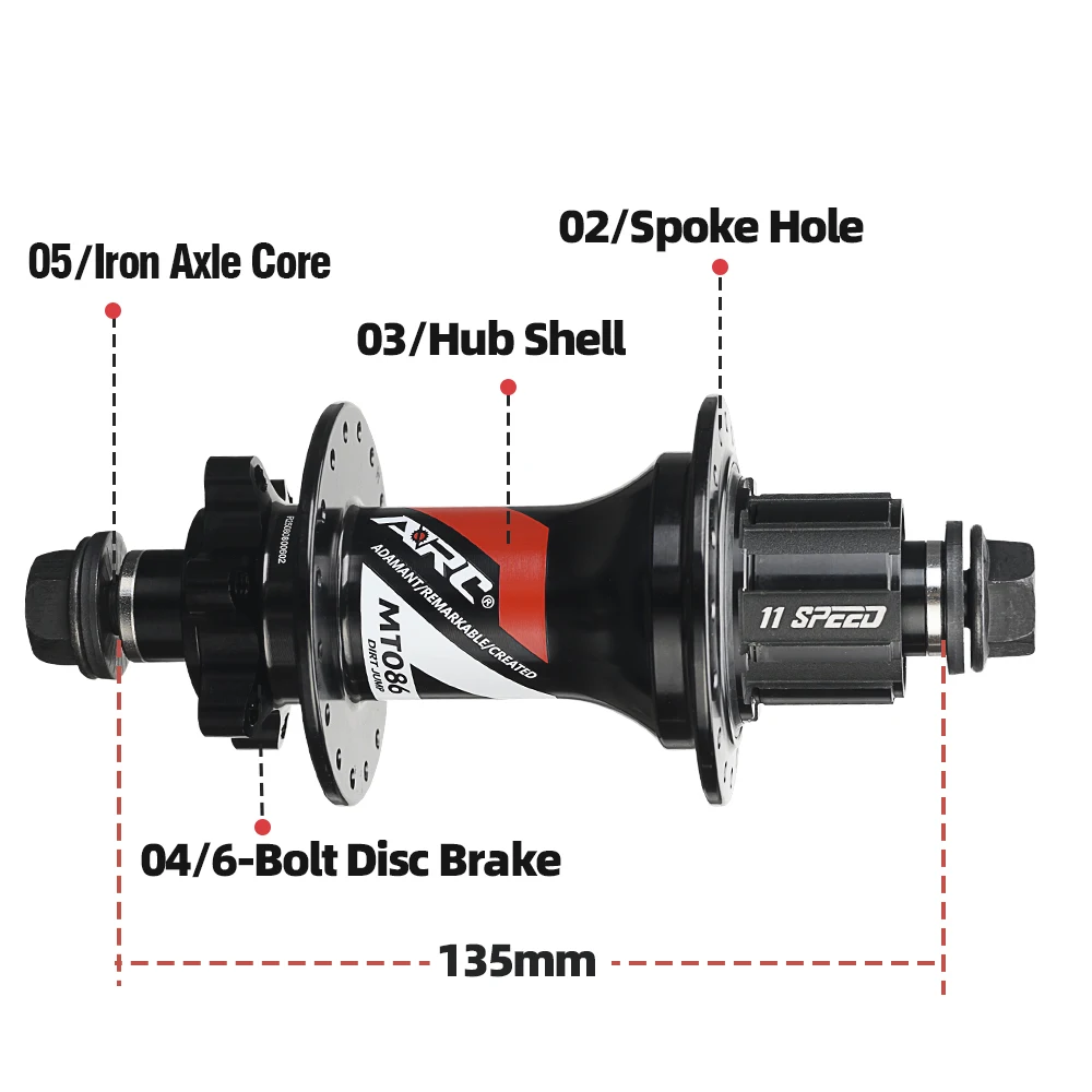 נאבה אחורית לאופניים ARC 6 Pawls HG חד-מהירותית, נאבה אטומה עם מיסבים, 6 ברגים, לבלמי דיסק, לאופני BMX, לאופני דירט ג'אמפ.