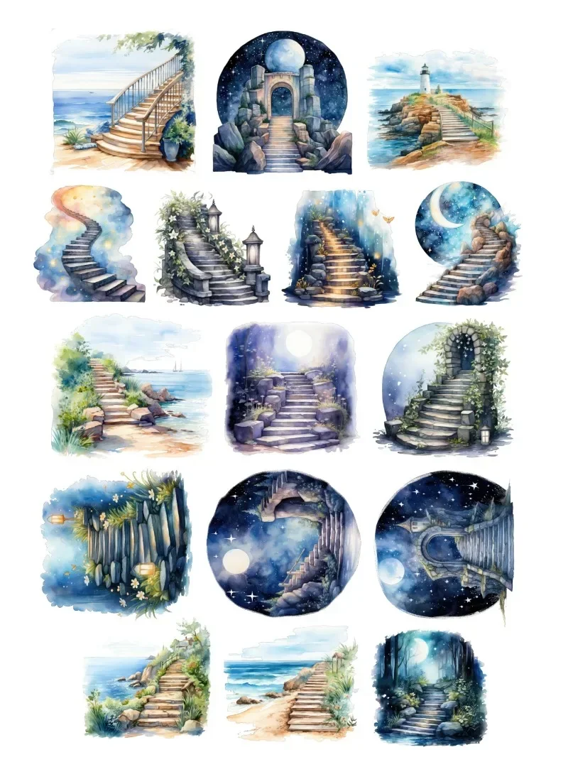 16pcs לילה חלומי ליד הים מדבקות קישוט מצחיק קישוט גפנים יומן טלפון יומן אלבום planner מדבקות וינטג'