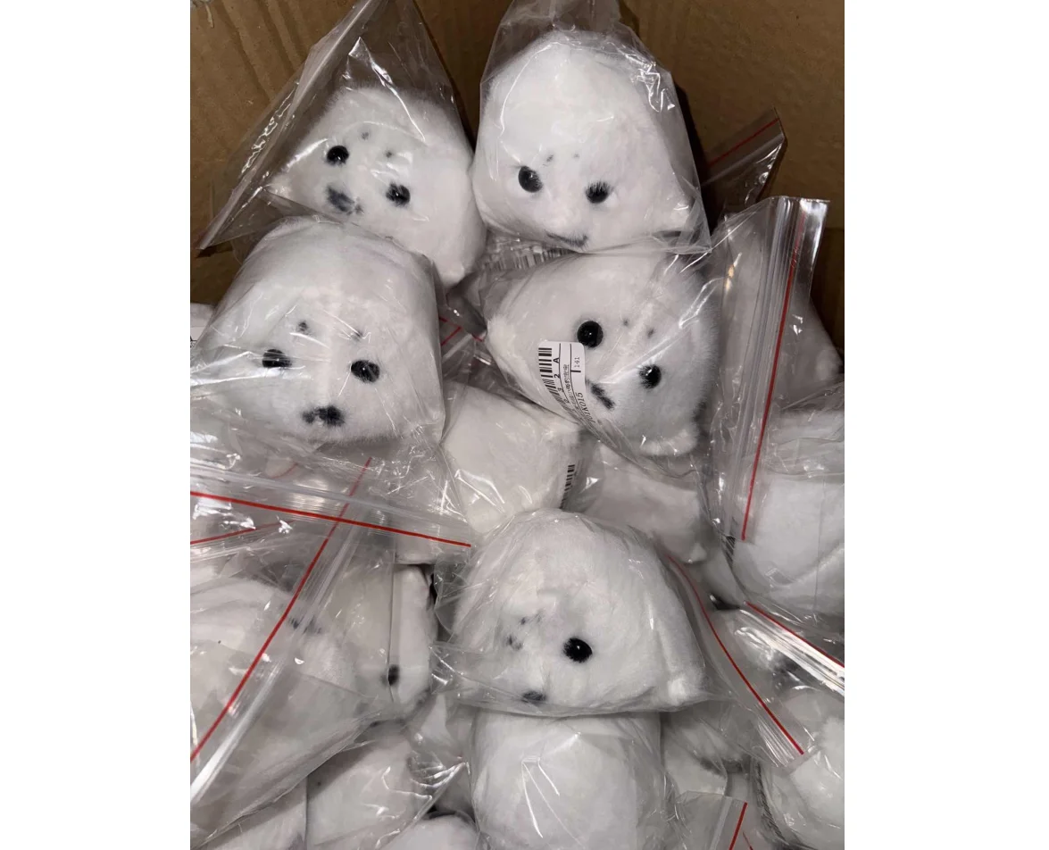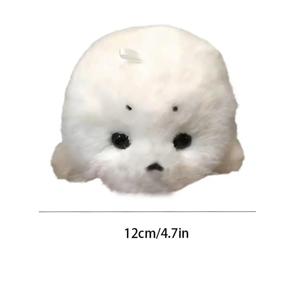 מחזיק מפתחות רך בצבע אפור עם חותם לבן, תליון חיות אופנתי, בובה ממולאת, מחזיק מפתחות לרכב, אביזרים לרכב, קישוטים לרכב