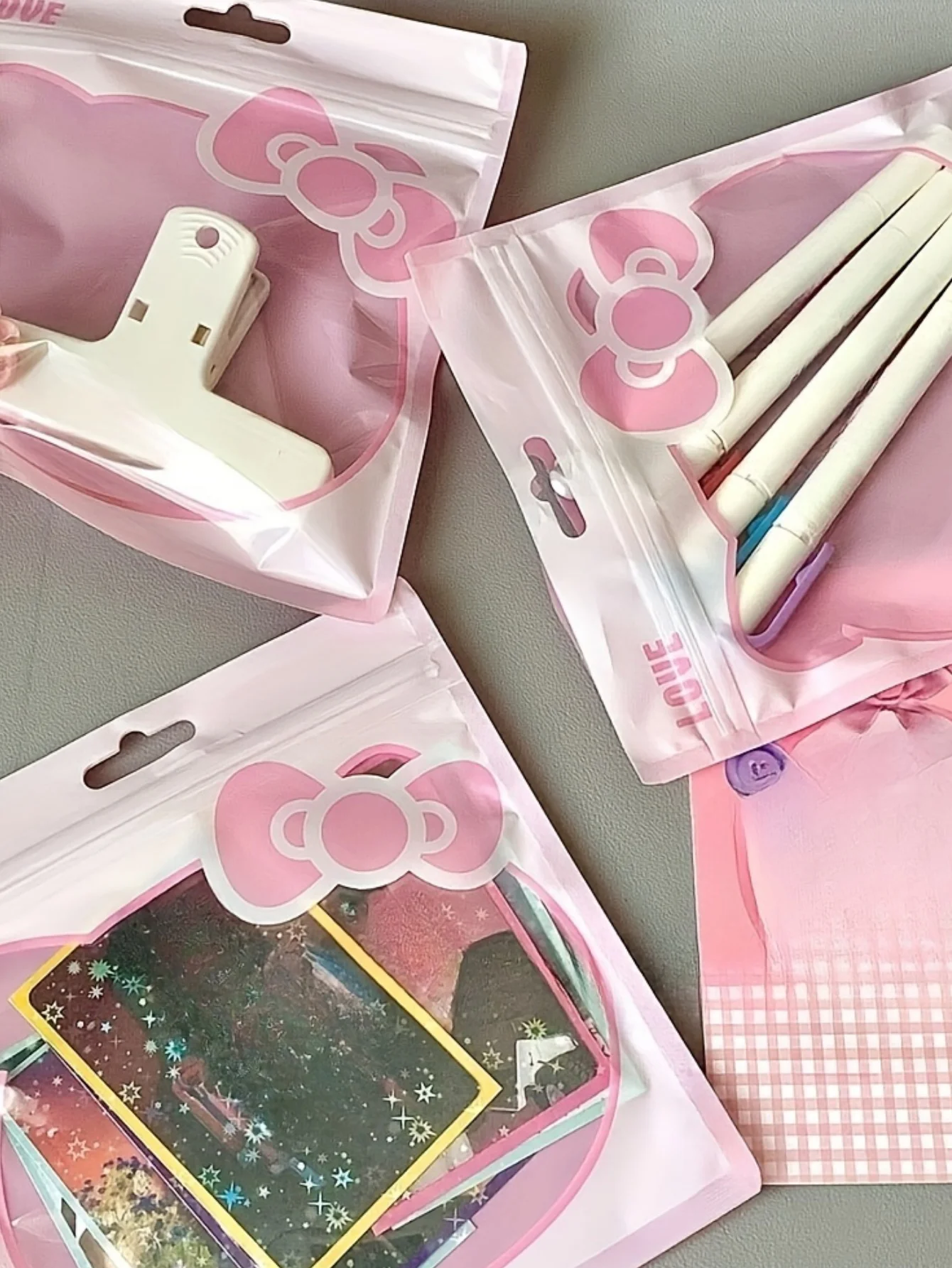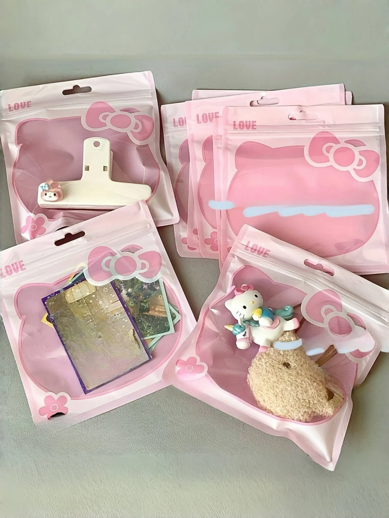 20/50/100 יחידות Sanrio Hello Cute Kitty שקיות אחסון מיני, פלסטיק לשימוש חוזר, שקיות רוכסן שקופות עמידות בפני אבק לתכשיטים