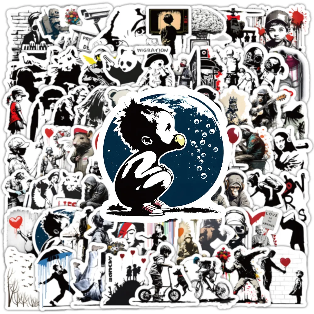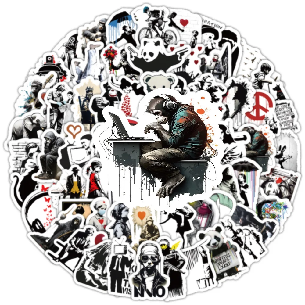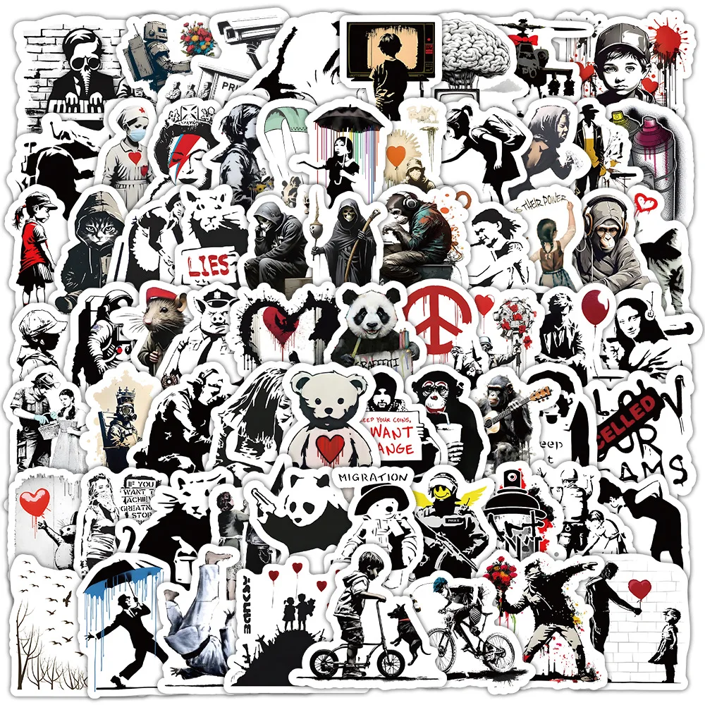 100 יחידות מדבקות אמנות בנקסי גרפיטי DIY יצירתיות לסקייטבורד, כוס, מזוודה, מחשב ומקרר