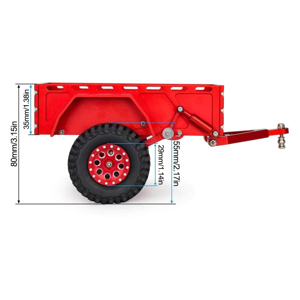 טריילר RC Crawler מאלומיניום CNC מכונה טריילר יוטיליטי עם ראש כדור תואם ל-1/18 RC Crawler TRX4M SCX24 Redcat
