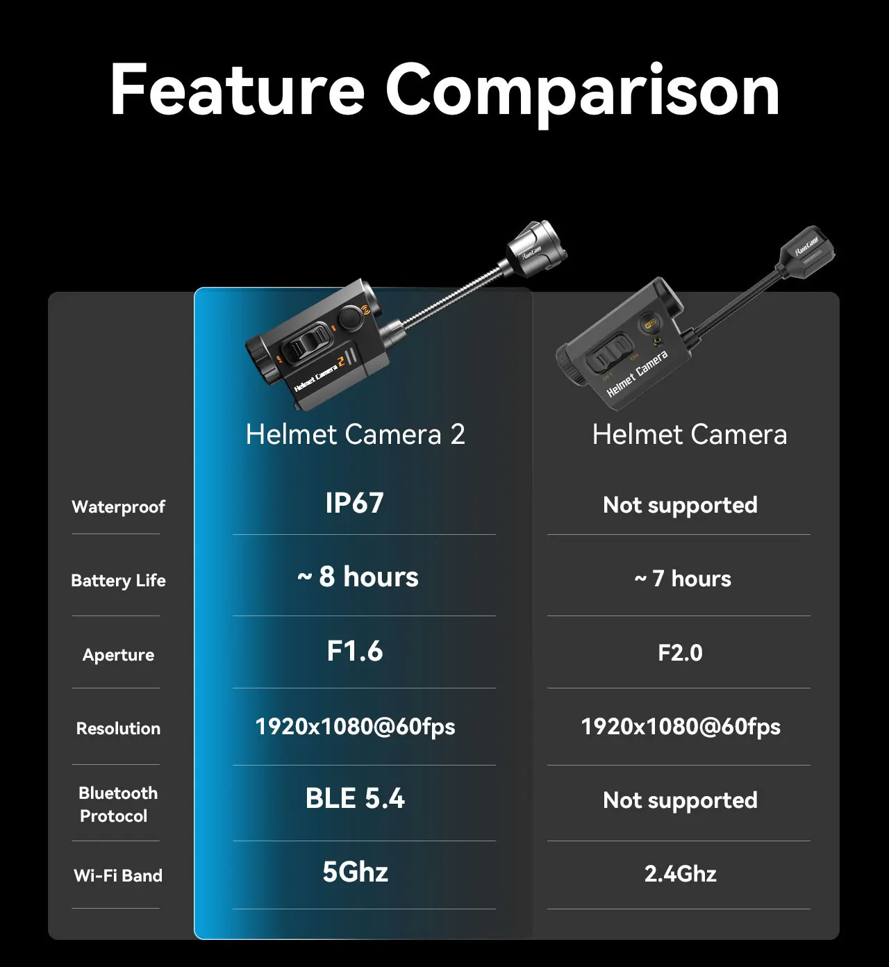 מצלמת קסדת RunCam 2 עם ראיית לילה, מסכת פנים רשומה, הקלטת איירסופט, חיי סוללה ארוכים, עמידה במים 1920*1080, הצגת אפליקציה מראש