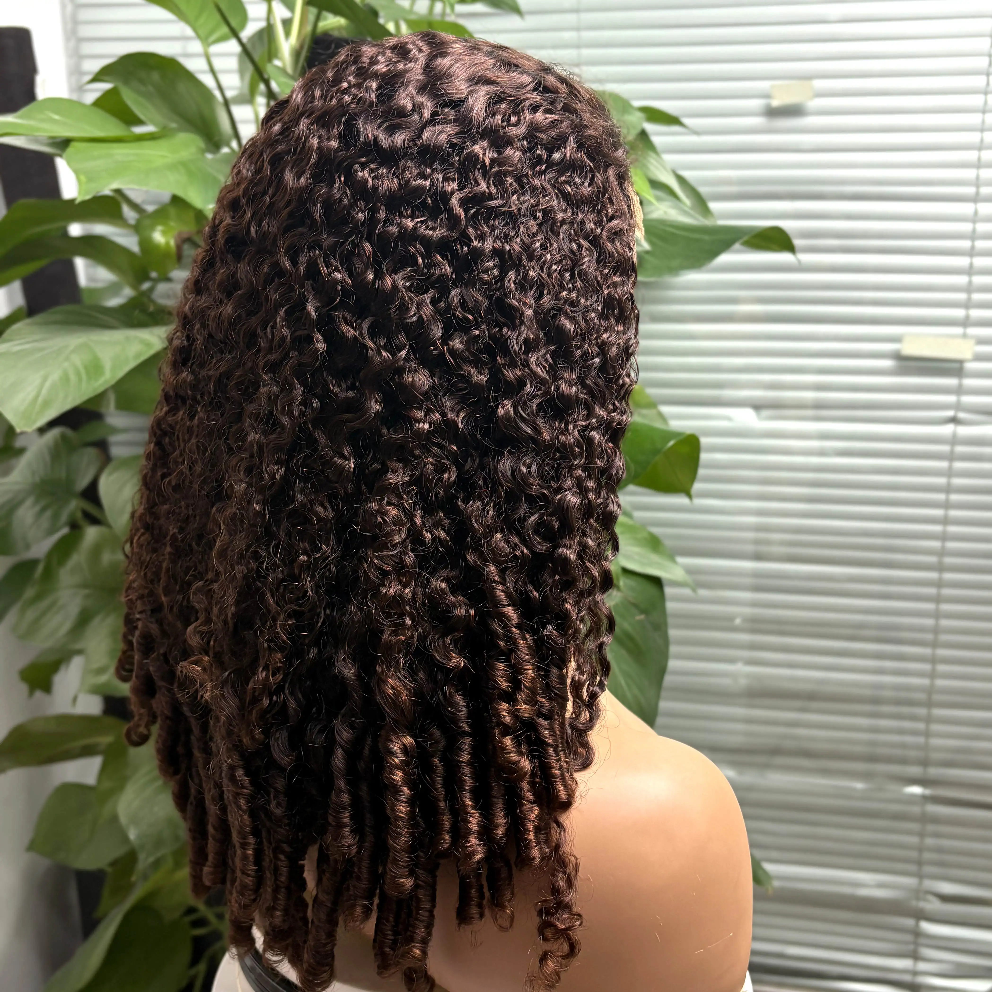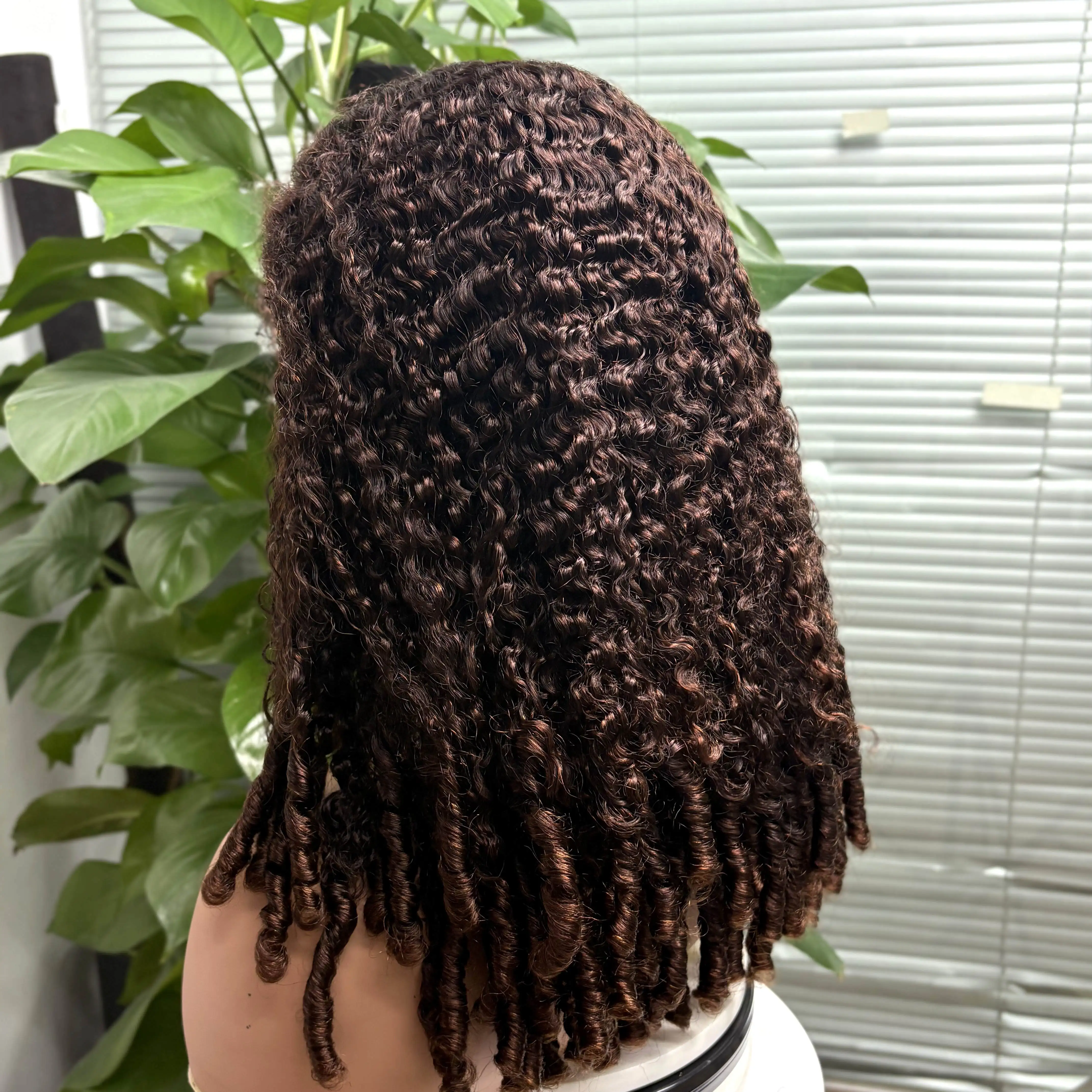 פאות שיער אנושי מתולתלות בסגנון בורמזי אומברה כהה ללא דבק 350% 5x5 עם סגירת תחרה, פאות שיער מתולתלות וקופצניות לנשים, שיער רמי מעוצב מראש.