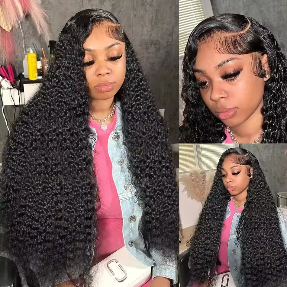 פאת קדמית גלית עמוקה בצפיפות 300, 13x6 HD ללא דבק, 100% שיער אנושי גלי מים, פאת תחרה קדמית לנשים, 30-34 אינץ', במבצע