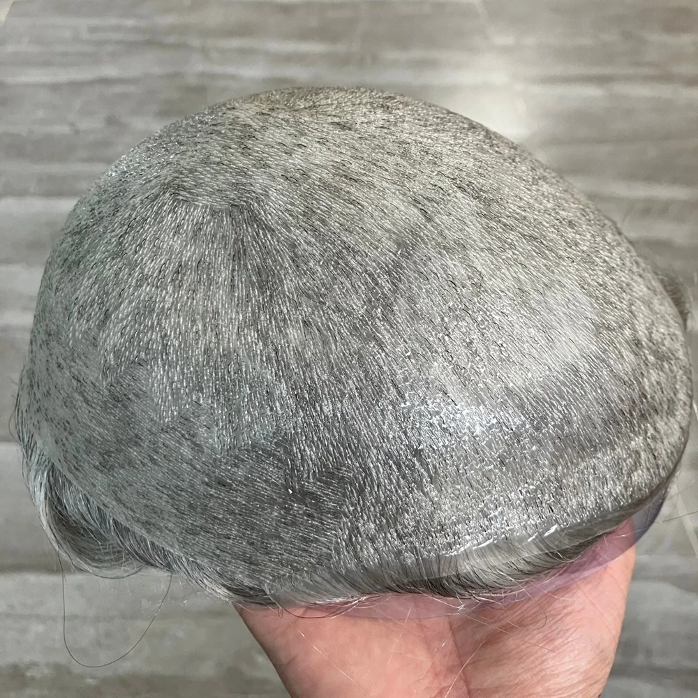 80% צפיפות מיקרו סקין 0.02mm~0.03mm בסיס פולי דק שיער אנושי לגברים תחליף שיער אפור 1B40 1B80 פאות קו שיער טבעי