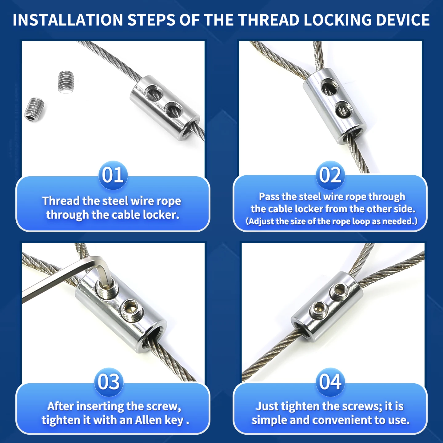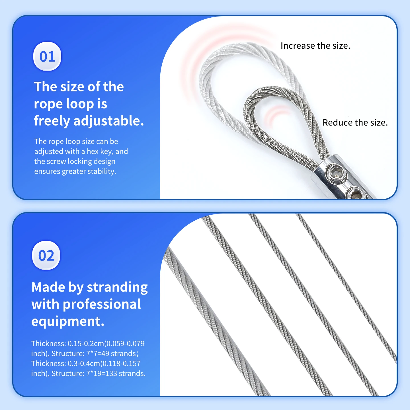 כבל חוט פלדה מתכוונן בקוטר 1.5/2/3/4 מילימטר, ערכת תליה לחוט פלדת אל-חלד 304 לתמונה