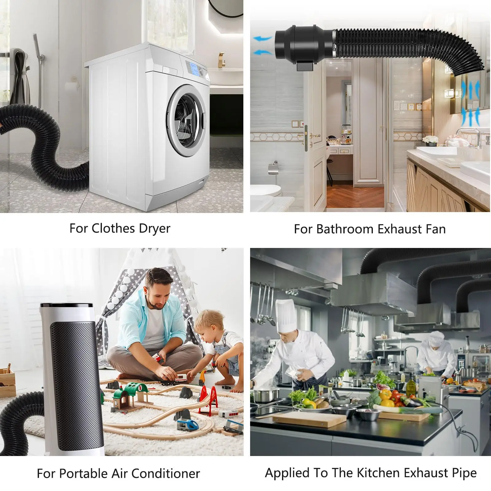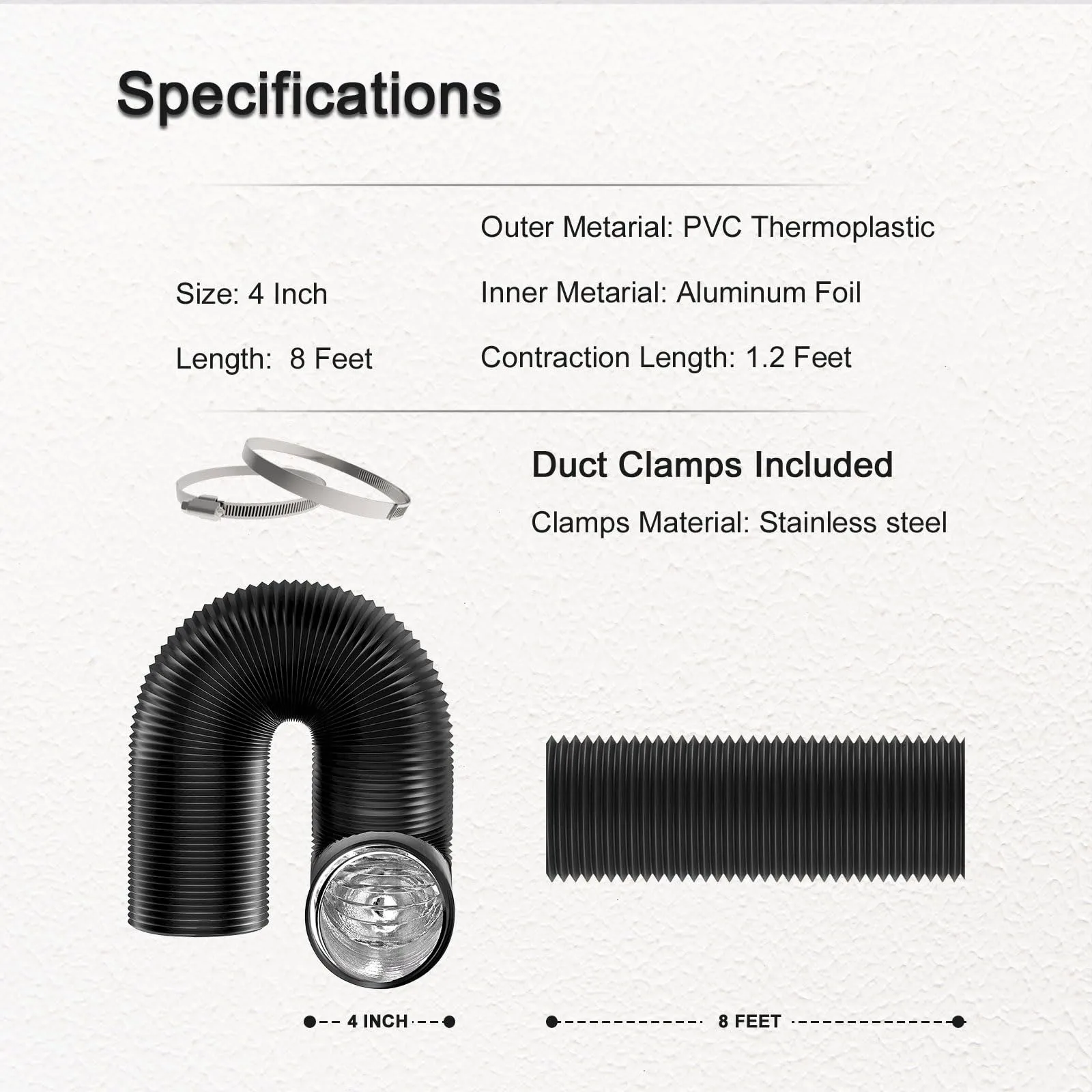 צינור אוורור למייבש כביסה 4 אינץ' עם 2 אטבי נירוסטה, צינור פליטה גמיש ועמיד למטבח