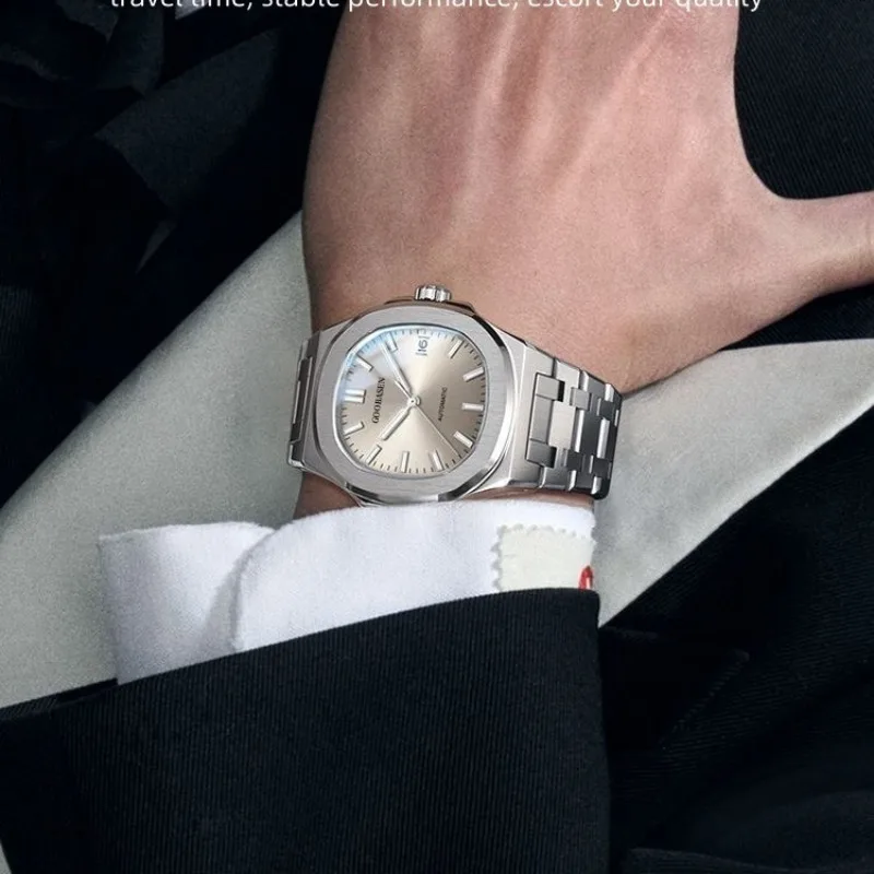 שעון אוטומטי חדש לנשים וגברים, שעון זוהר לגבר, רצועת פלדה, שעוני יד, שעון מותג יוקרתי