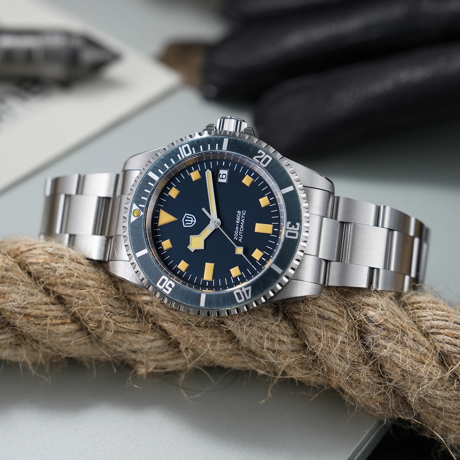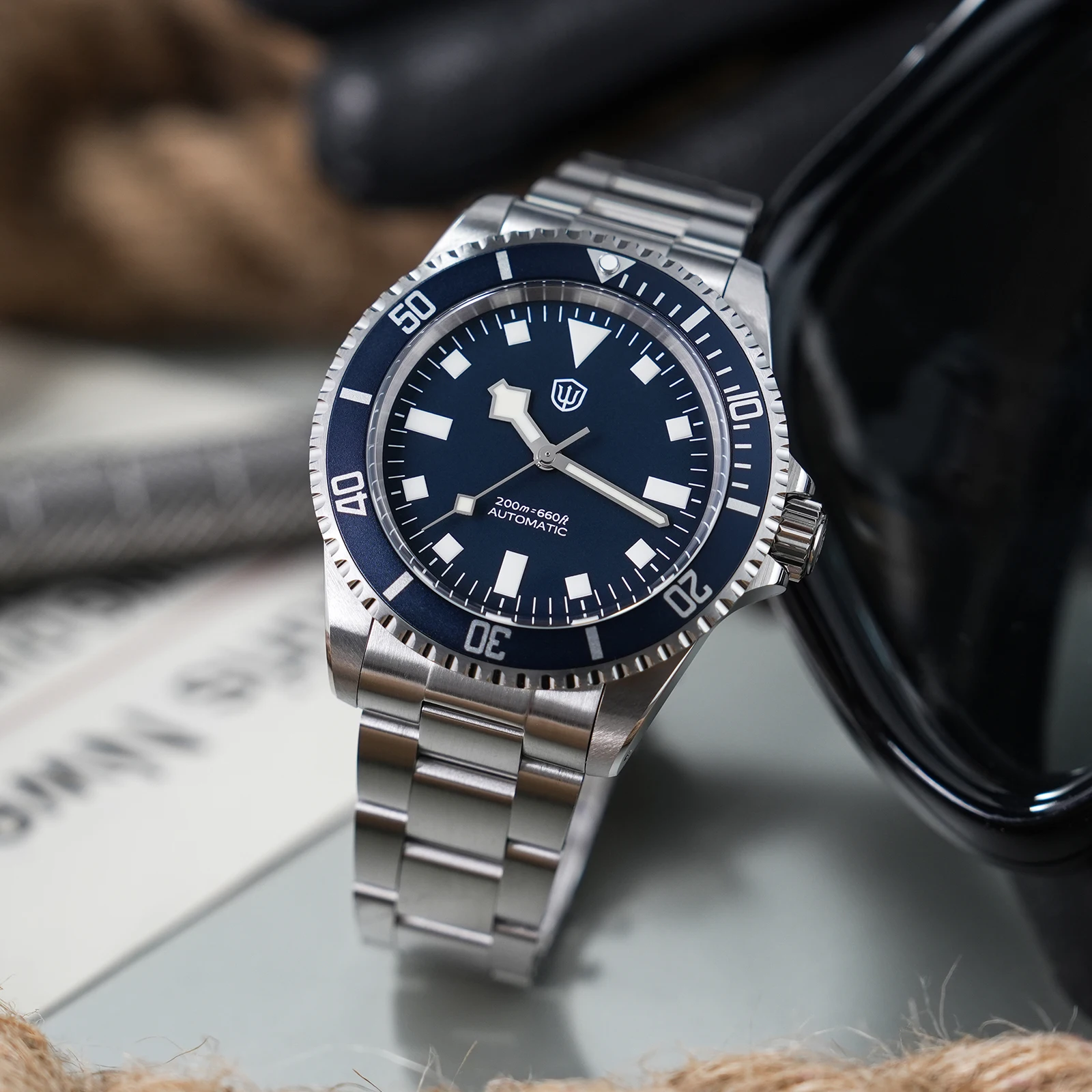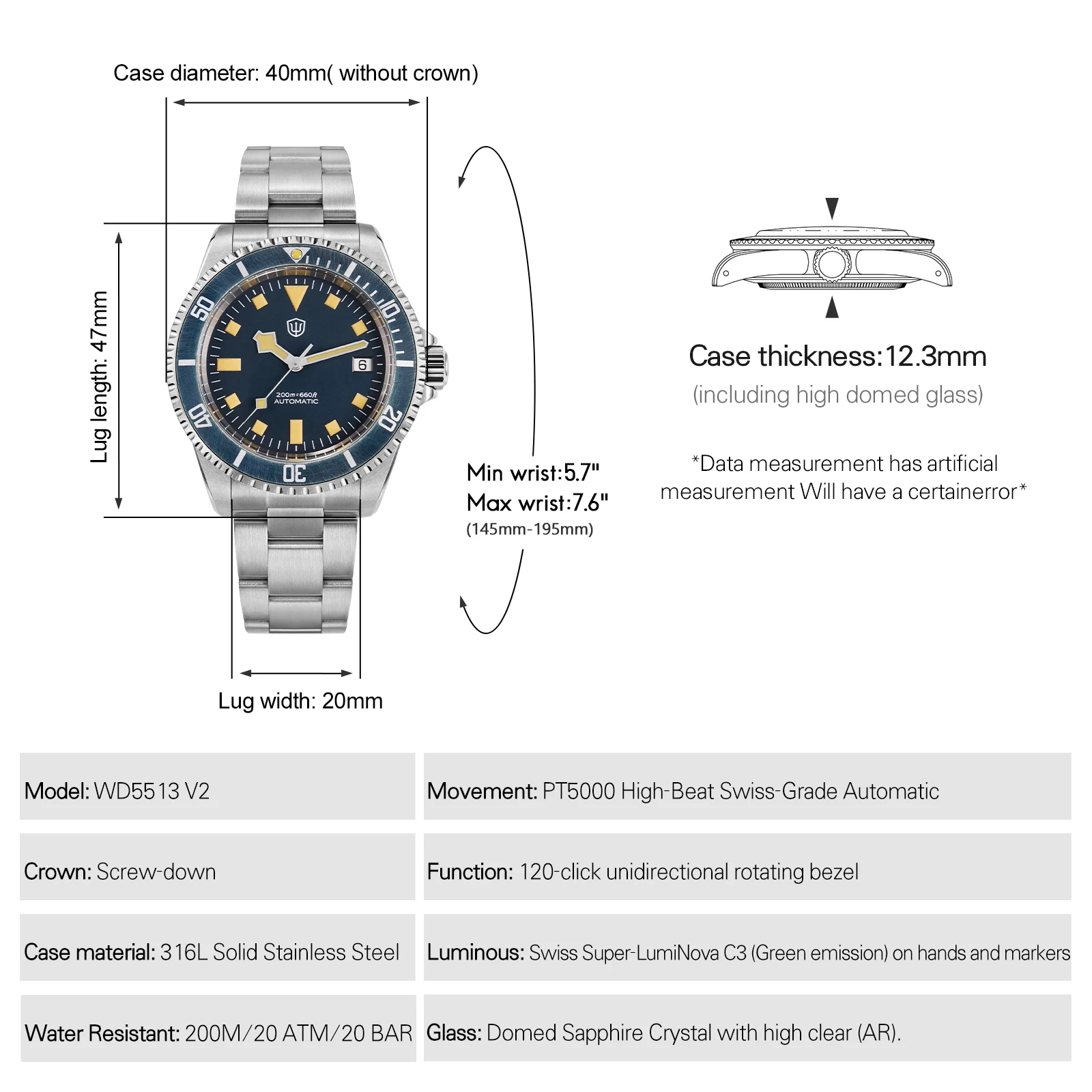 שעונים WD5513 V2 PT5000 וינטאג' תת צלילה שעון מכני אוטומטי ספיר עמיד למים 20 בר פלדת אל-חלד