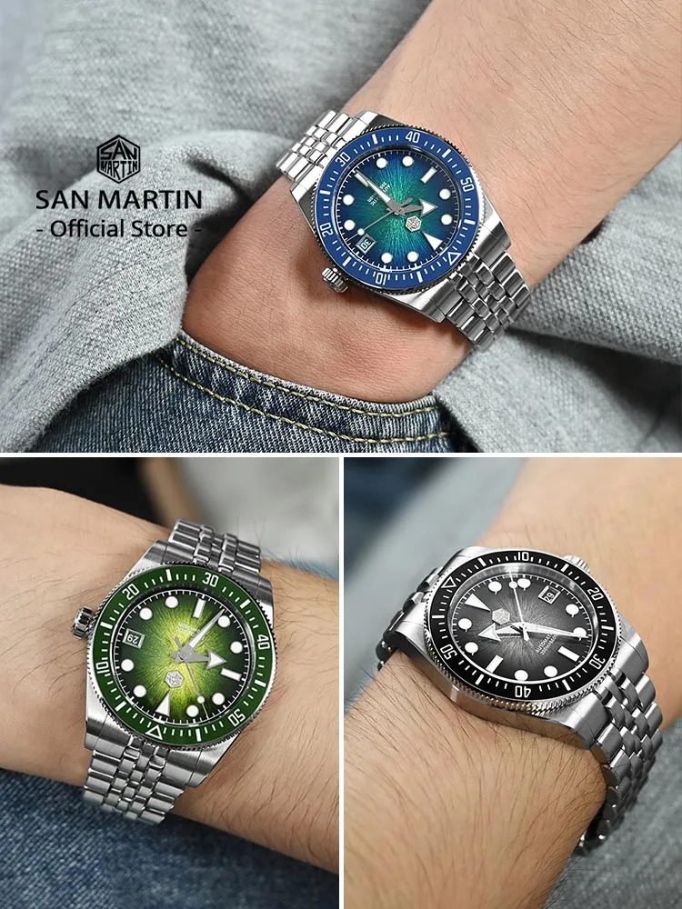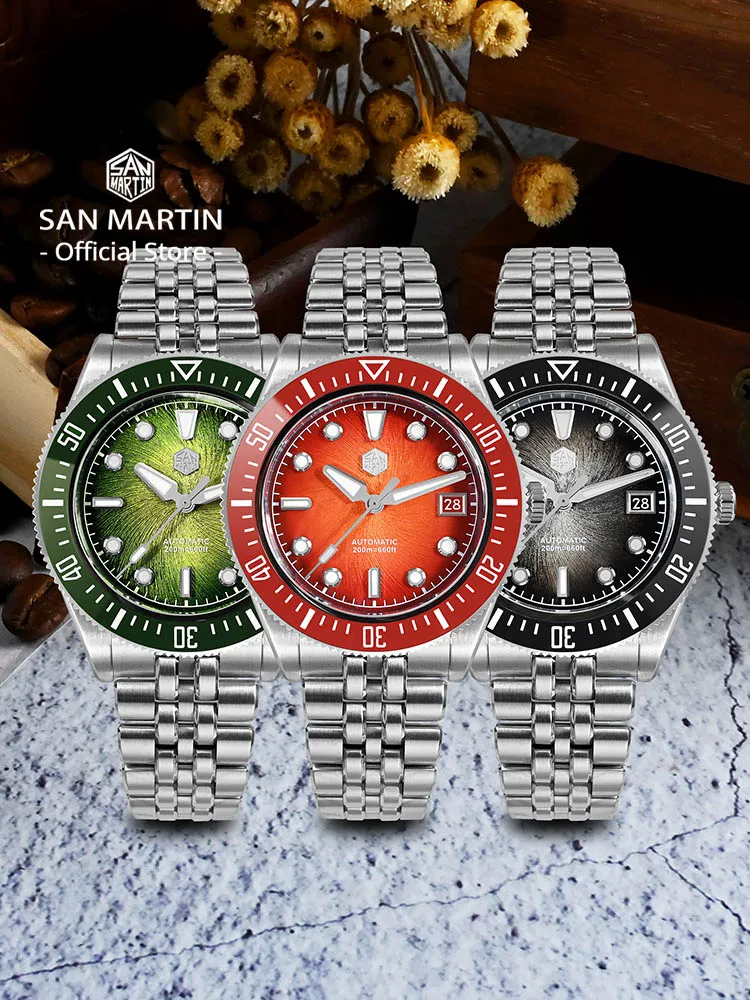 San Martin 37.5mm 40mm שעון צוללן לגברים Miyota 9015 Enamel Dial שעון יד מכני אוטומטי יוקרתי עמיד למים 200m SN0148