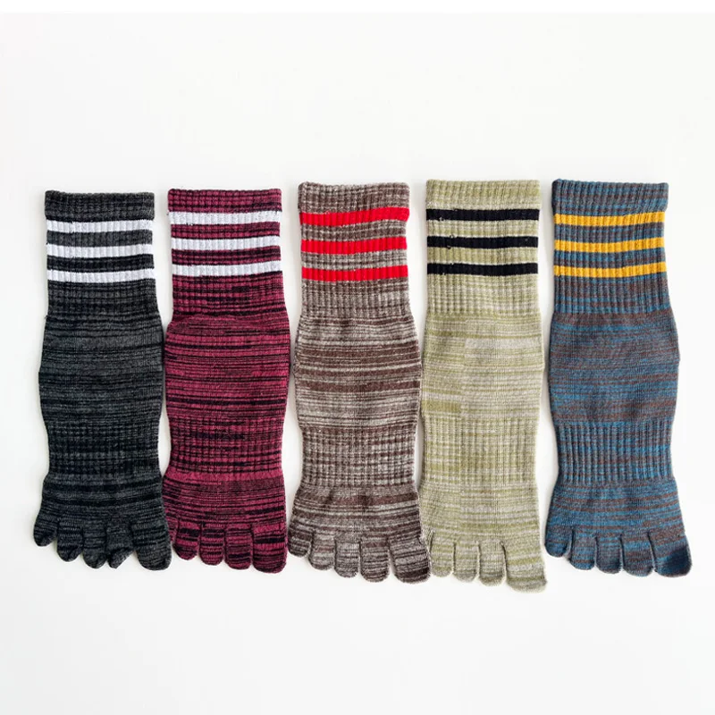 5 זוגות גרבי ספורט לאצבעות גברים מבד כותנה רצועות צבעוניות דחיסה סופגת זיעה מסירת ריחות כושר נסיעות 5 אצבעות קצרות