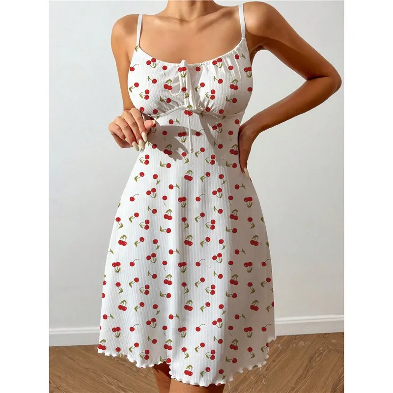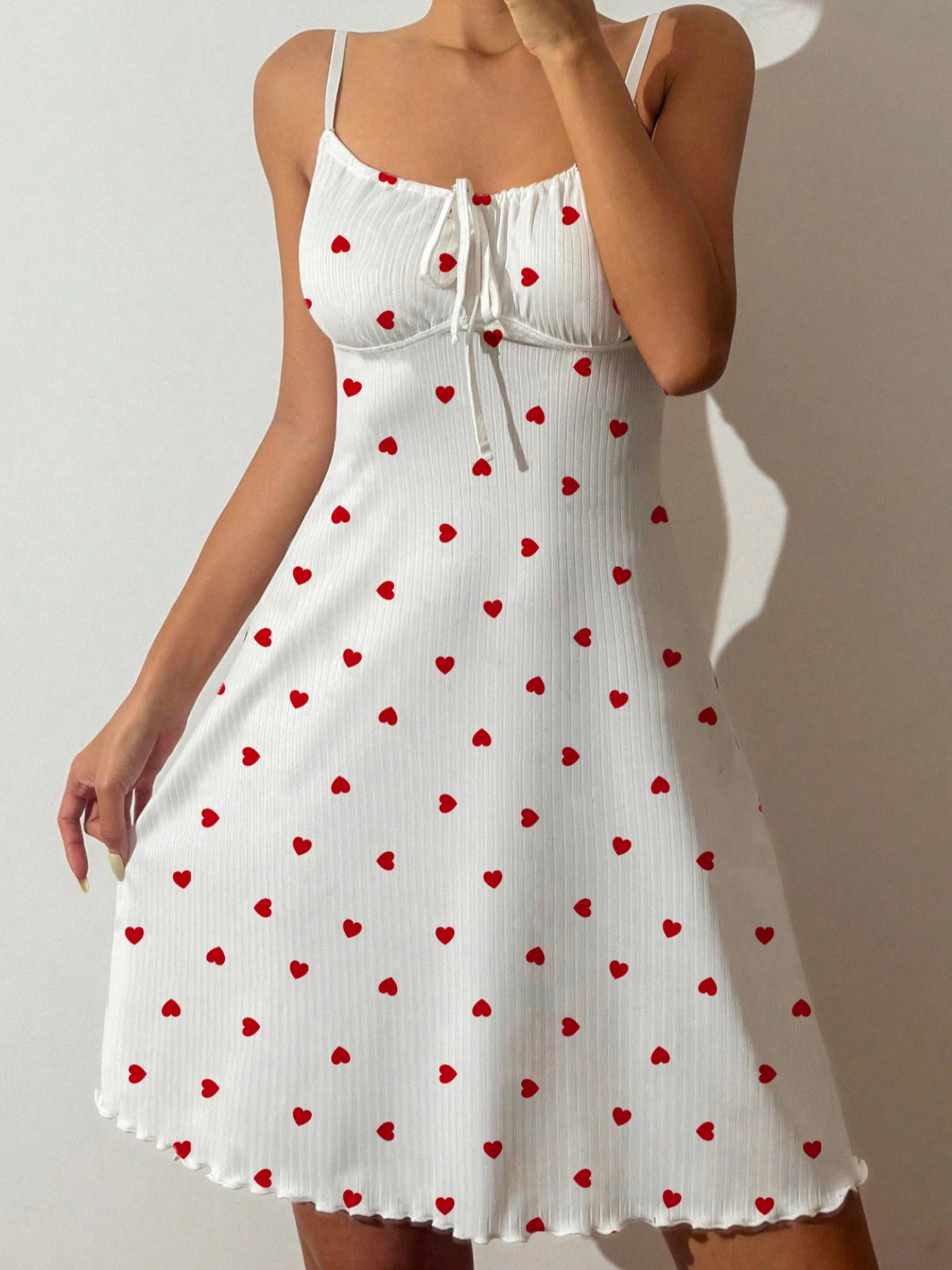 שמלת שינה סקסית לנשים עם הדפס לב, צווארון הלטר, פיג'מה מיני, שמלת שינה קז'ואלית