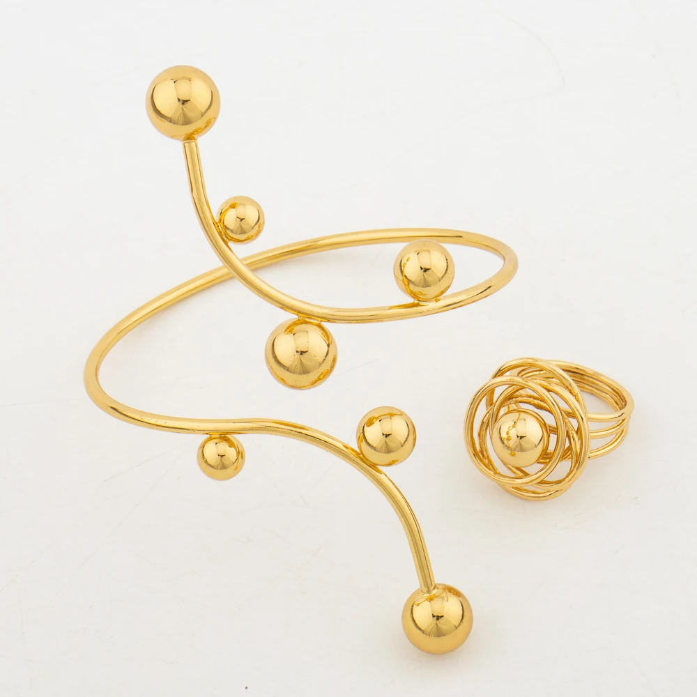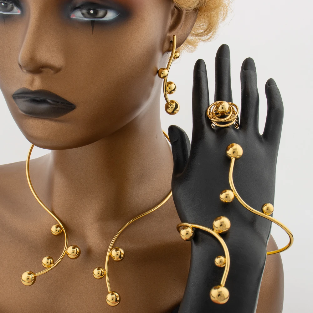 אופנה חדשה חרוז עיצוב זהב סט תכשיטים אלגנטי אישה איטאלי אפריקאי שרשרת צמיד עגילי חג המולד מתנה