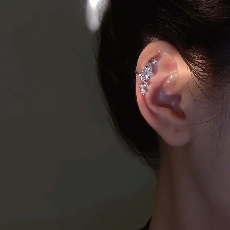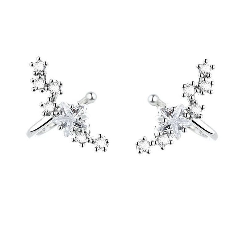 אין פירסינג שרוול אוזן Satr עגילי לנשים 1PC כסף צבע קריסטל Earclip מסלולית ללא פירסינג חרישת תכשיטים EF070