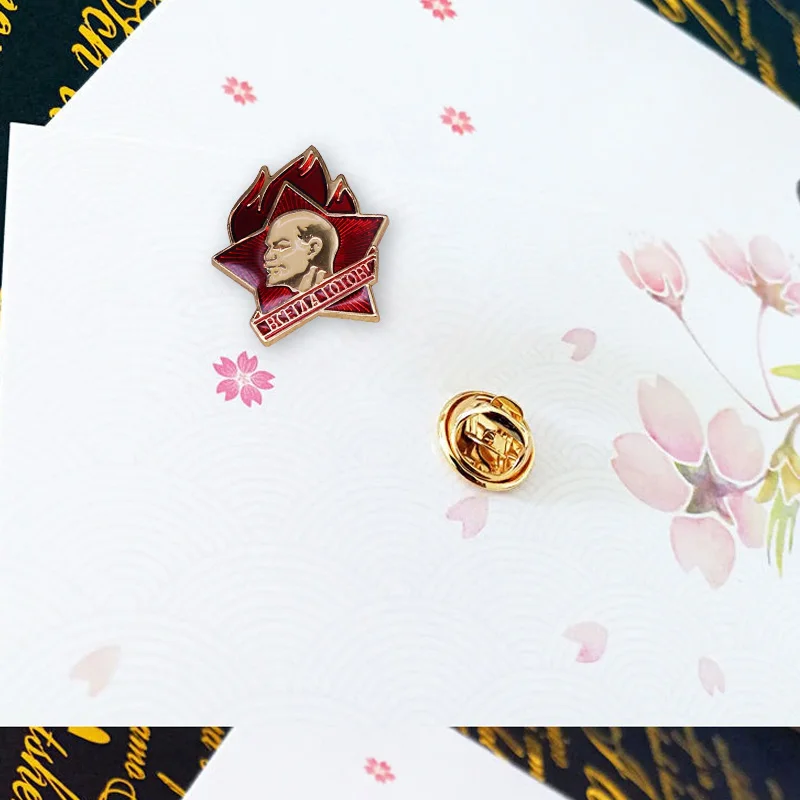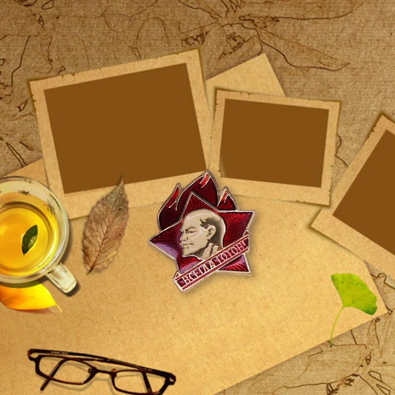 דש פין ולדימיר לנין על אדום כוכב תמיד מוכן סיכת סובייטי מהפכה תג עם לנין