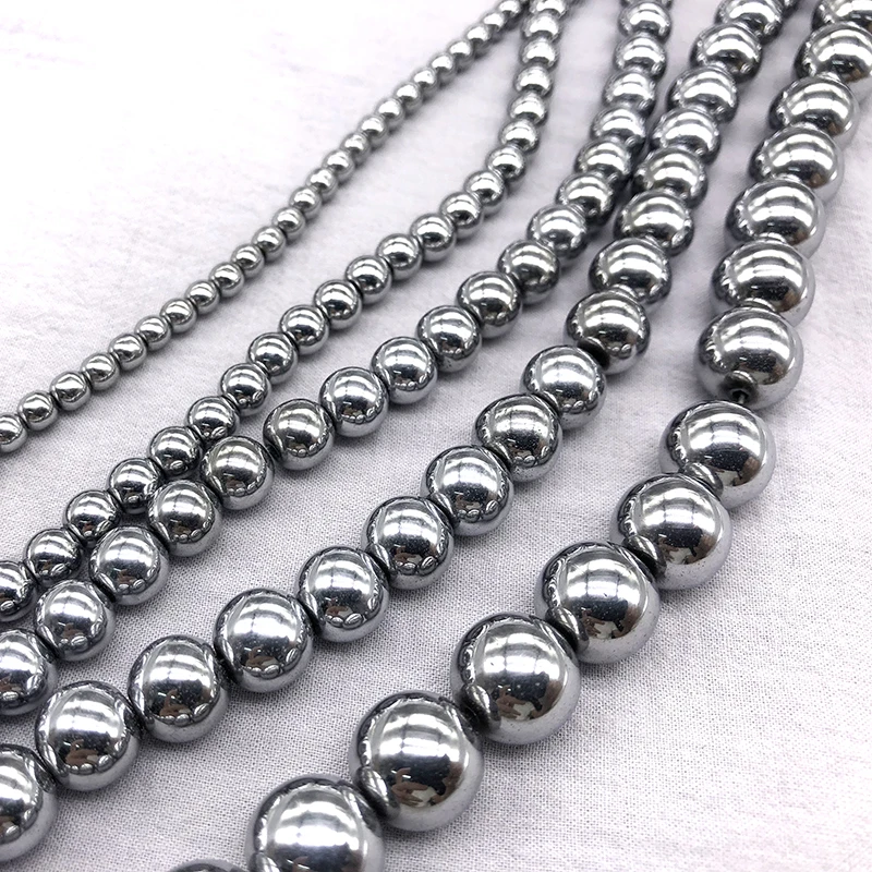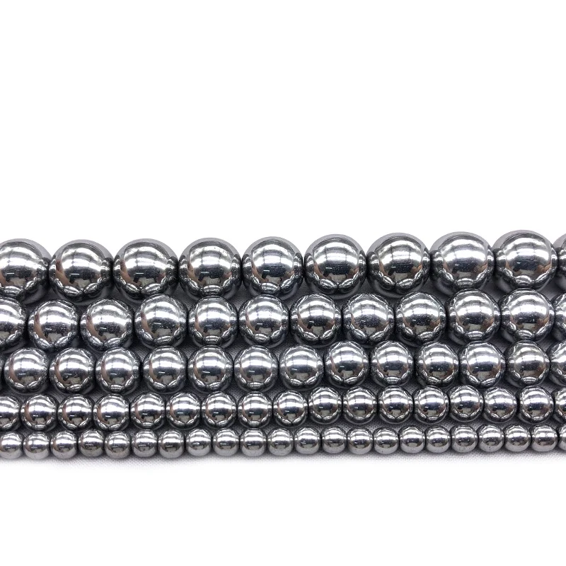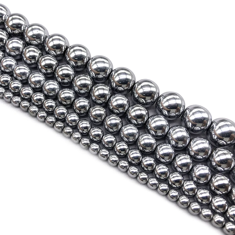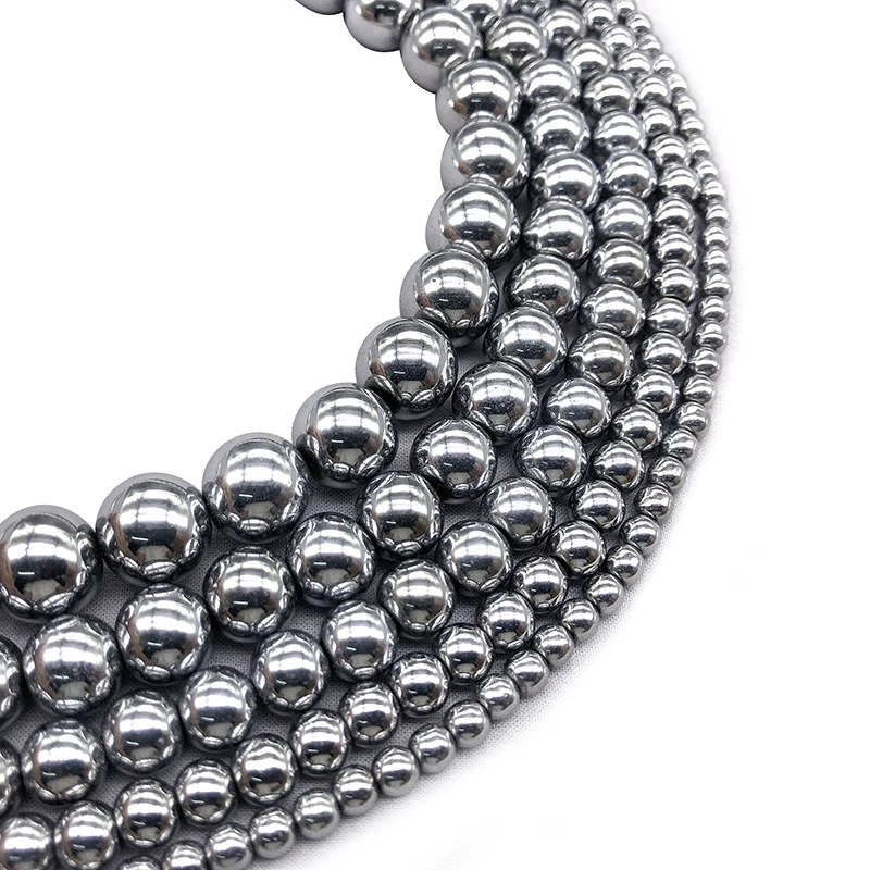 חרוזי אבן המטיט המצופים בכסף טבעי, חרוזים עגולים ליצירת תכשיטים, אביזרים ליצירת צמידים בעצמך, 2/3/4/6/8/10/12 מילימטר, 15''