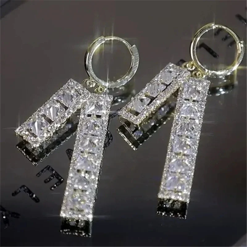 מגמת אופנה חדשה עיצוב ייחודי אלגנטי ומרהיב עגילי זירקון מלבניים לנשים תכשיטים לחתונה ולמסיבות מתנות פרימיום