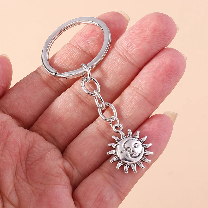 מחזיק מפתחות מתכתי חמוד עם תליוני שמש, ירח ועננים, מתנות סוביניר לנשים וגברים, מפתחות לרכב ולתיקים, אביזרים לעשייה בעצמך