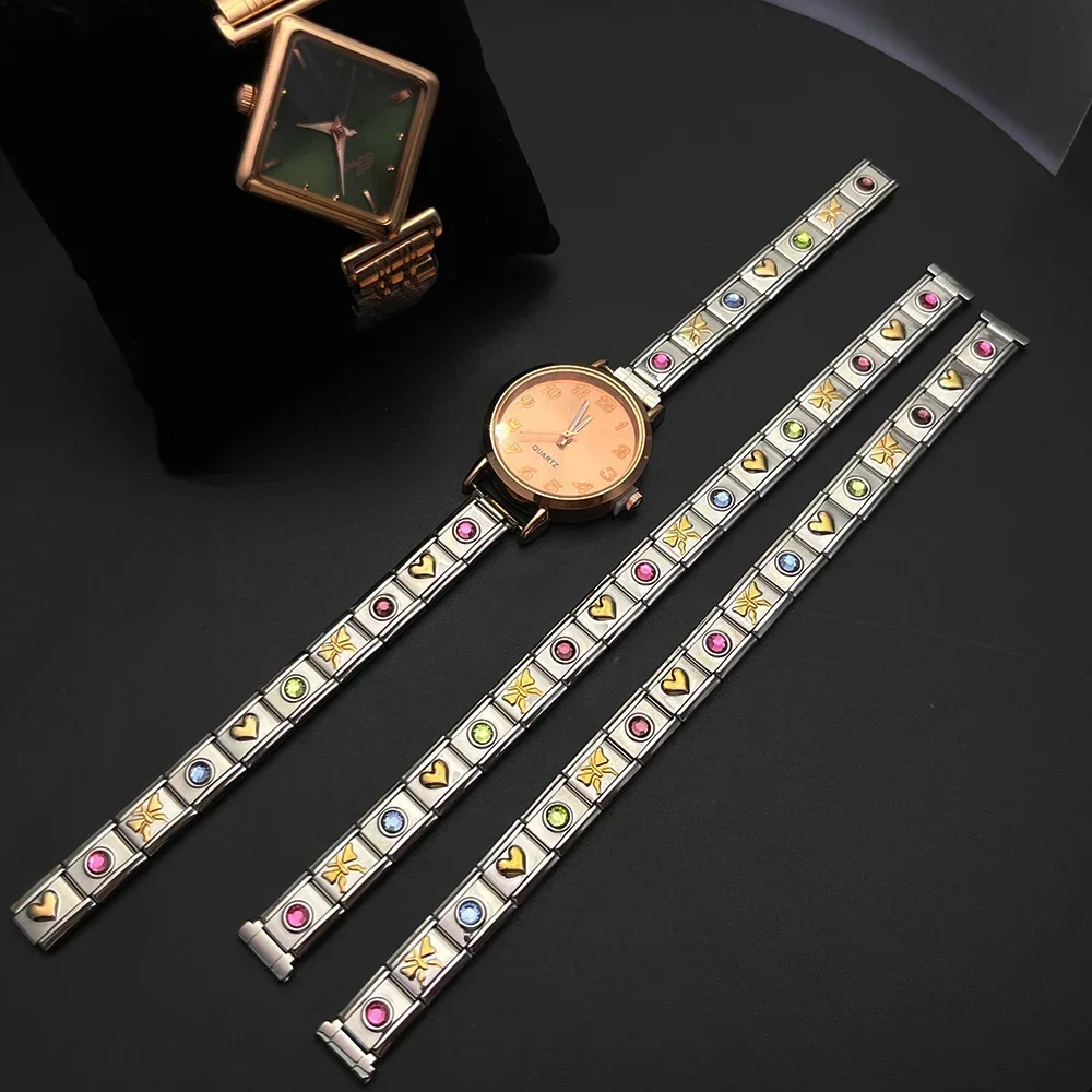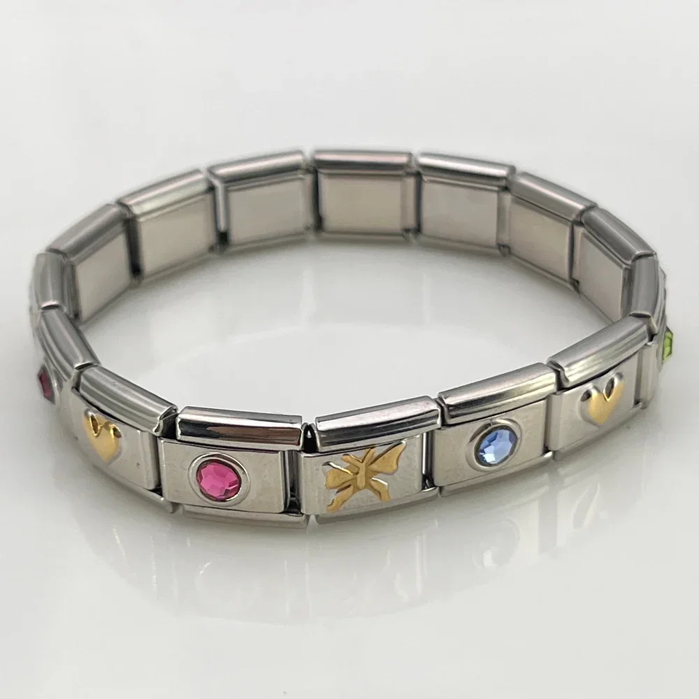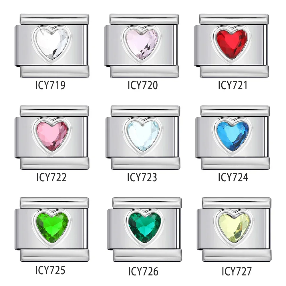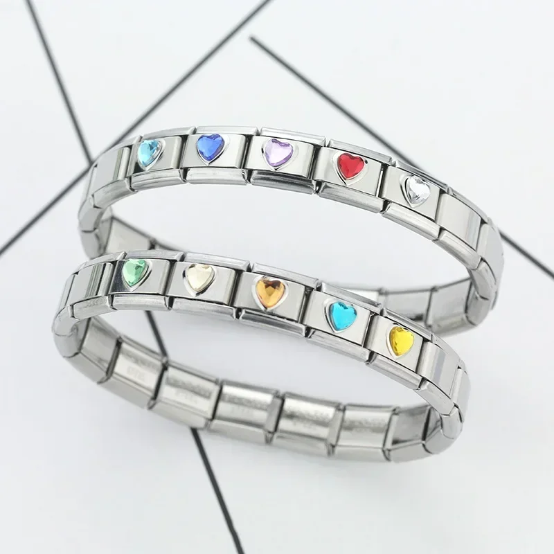 מעגל לב צבעוני זירקון צמיד קסם איטלקי שרשרת קישור מפלדת אל חלד לאישה גברים מסיבה יומית מתנה עשה זאת בעצמך תכשיטים