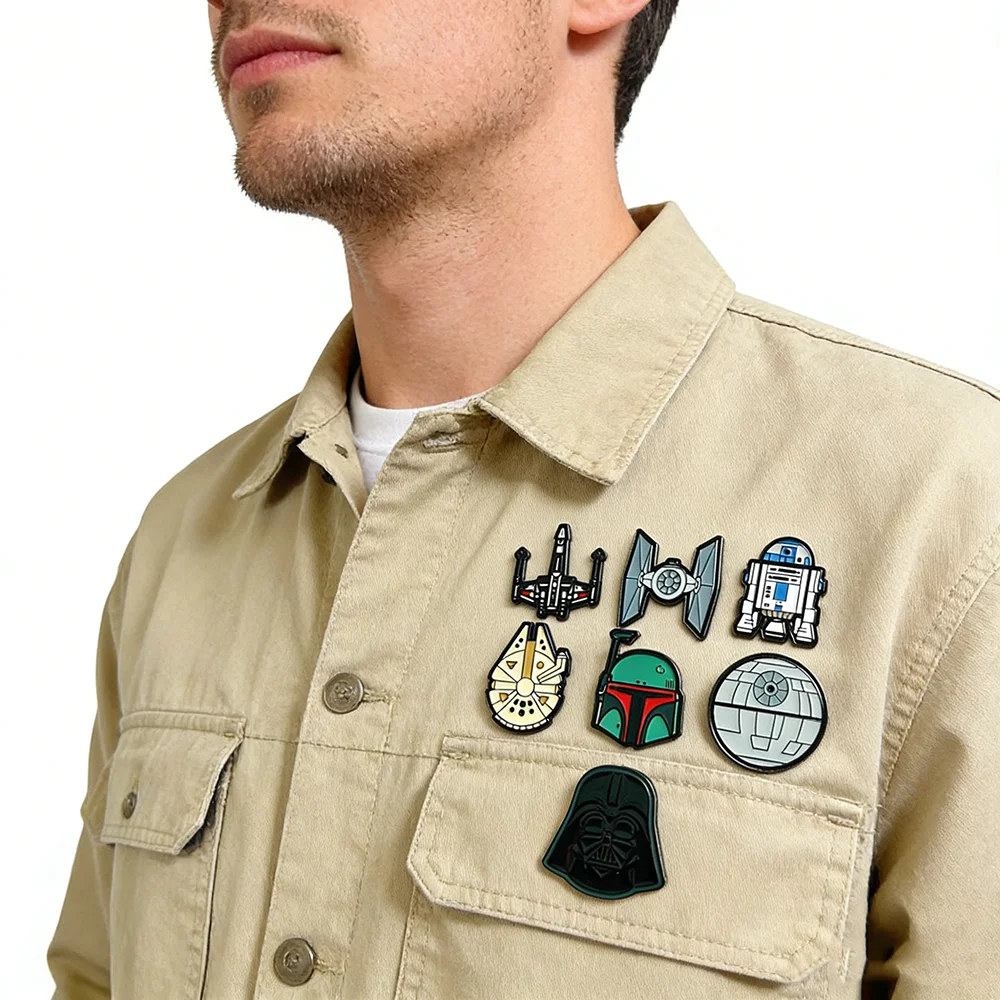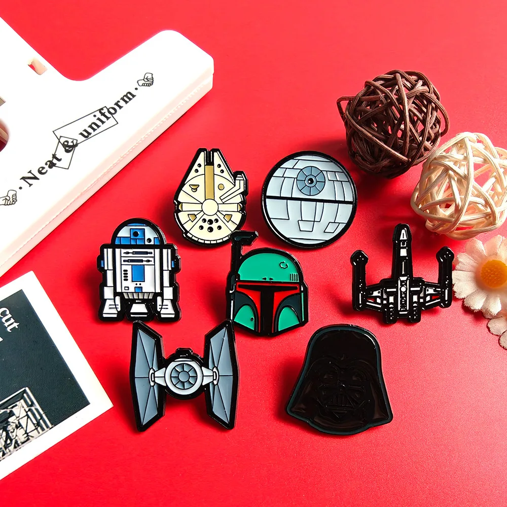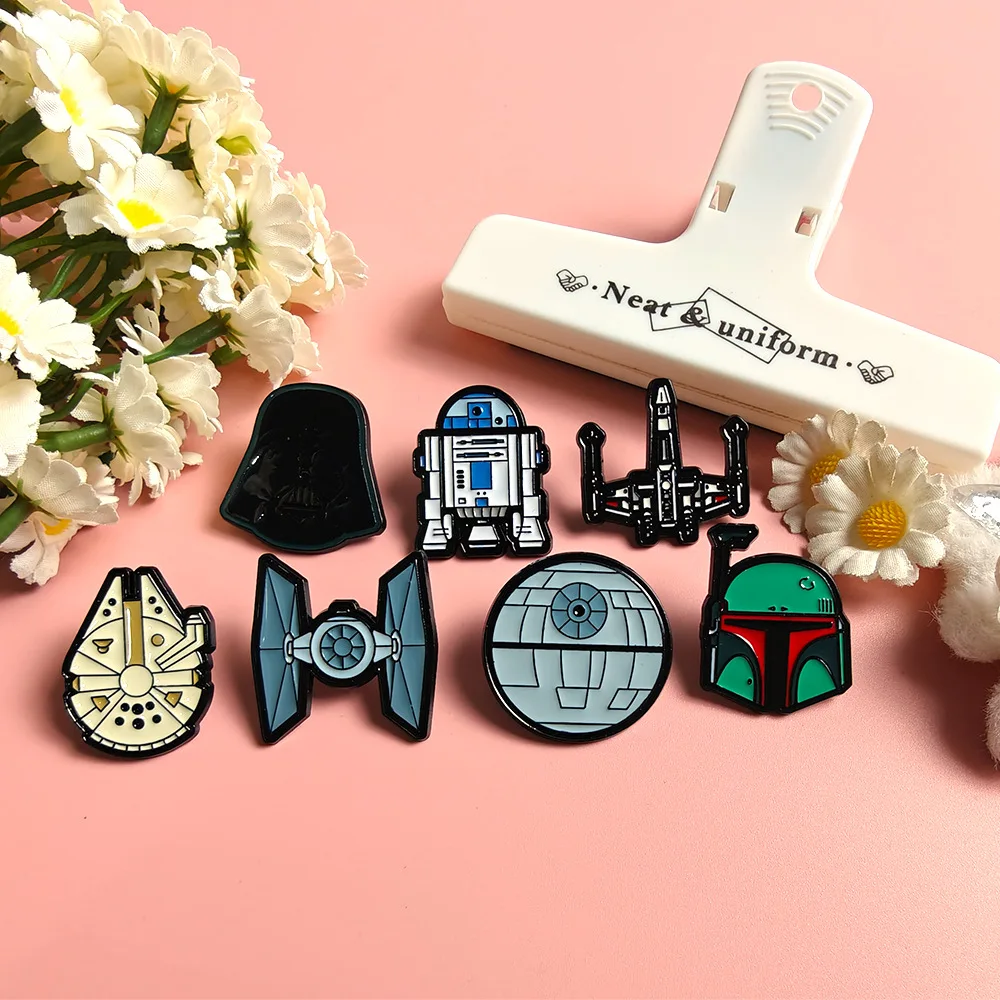 סט סיכות אמייל של מלחמת הכוכבים 7 יחידות הכולל סטמורטרופר דארת' ויידר מילניום פלקון כוכב המוות ו-R2-D2 אוסף סיכות רובוט