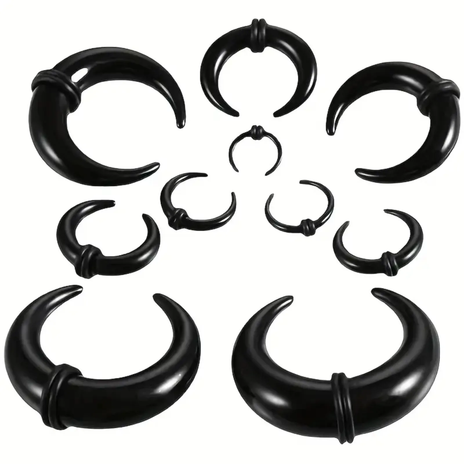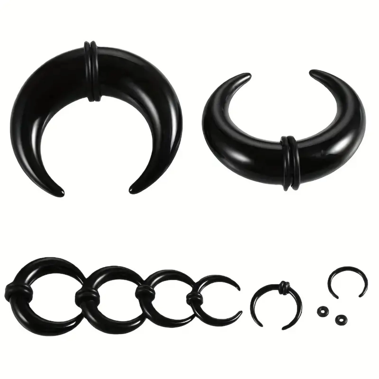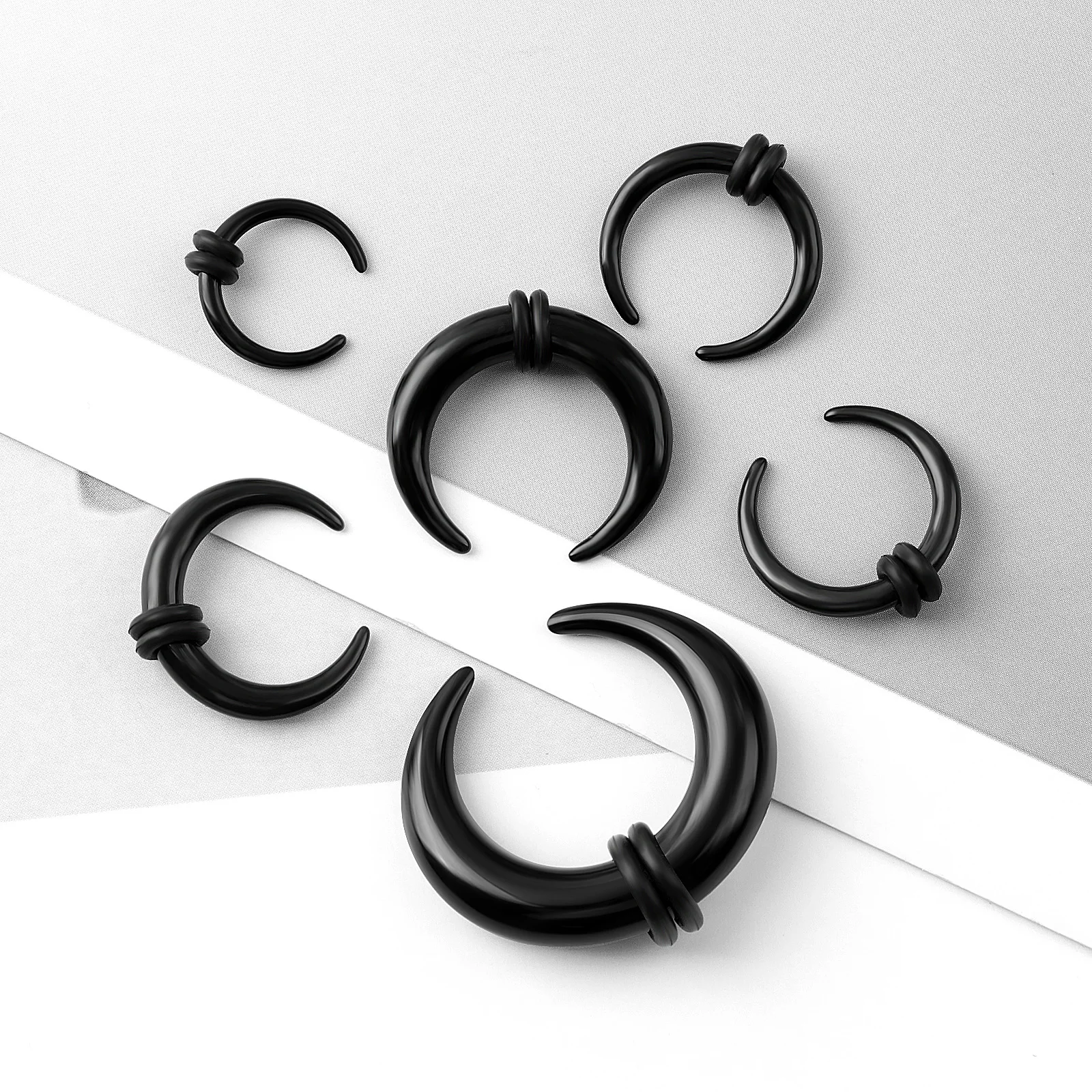 סט תכשיטי חור באוזן בצורת U מאקריליק בצבע שחור עם גודל חור באוזן וטבעת ספטום