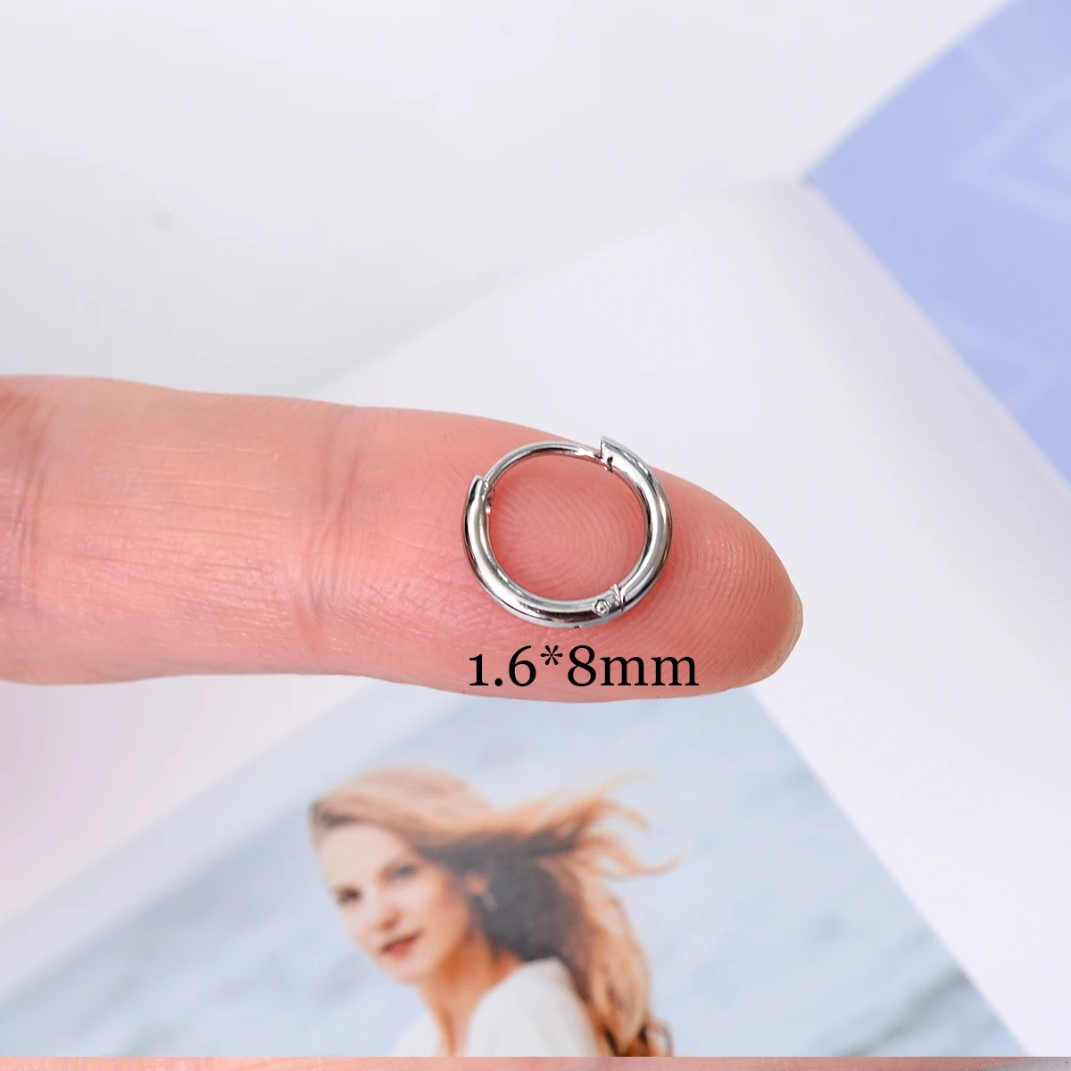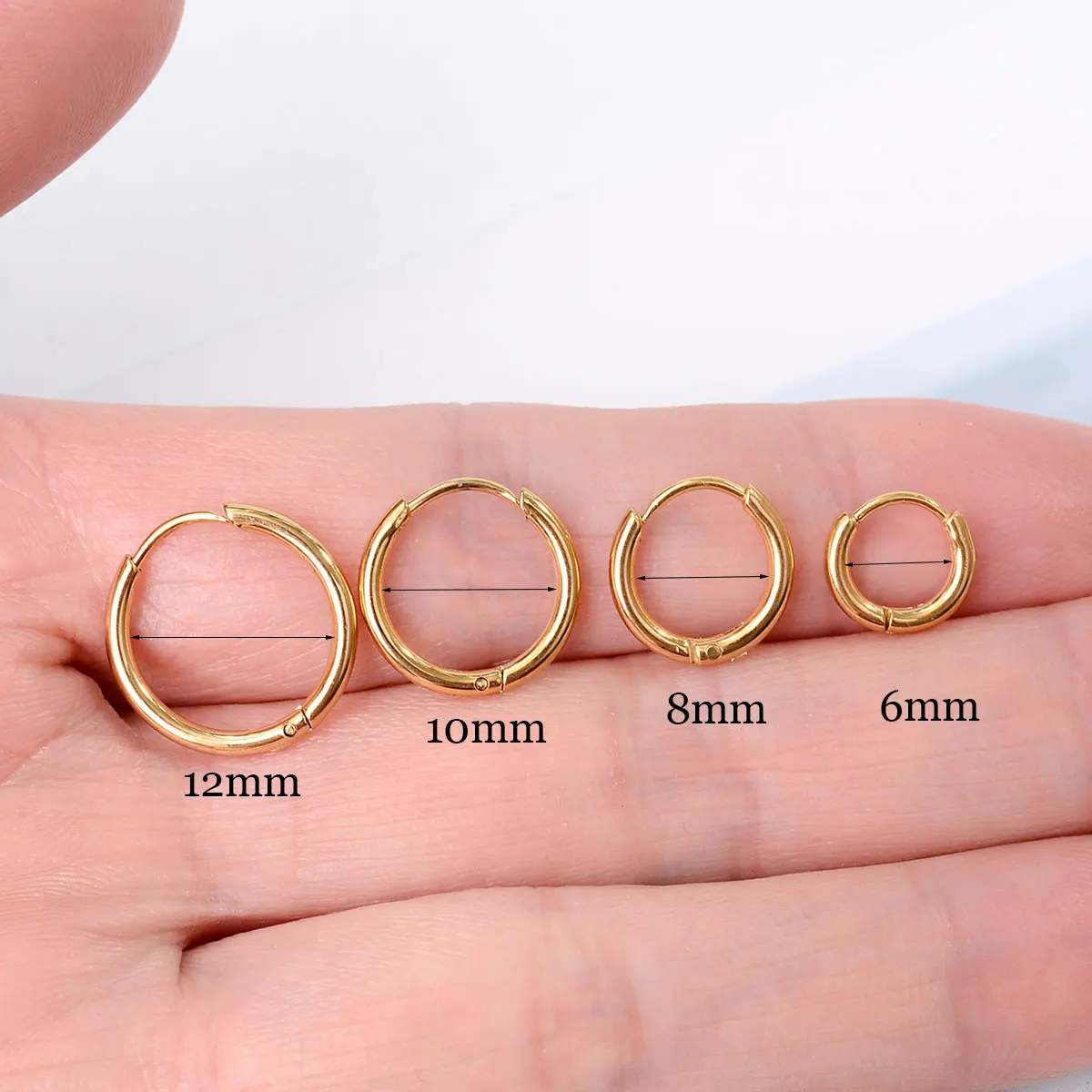עגילי חישוק קטנים מפלדת אל-חלד קוריאנית בצורת עיגול לנשים