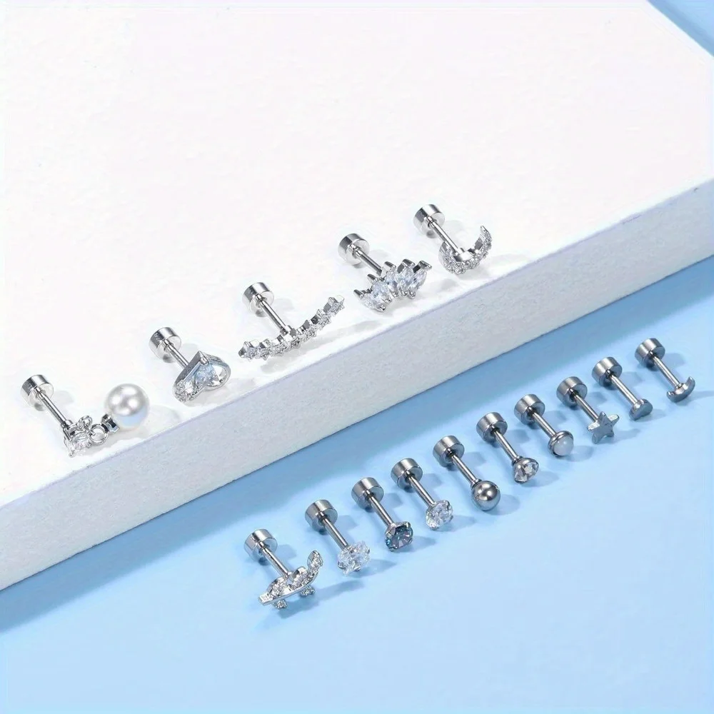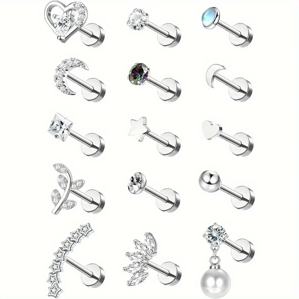 עגילי קרטילג' מפלדת אל-חלד Florideco 1PC לנשים עם אופל, עגילי גב שטוחים לשפתיים, אף ואוזניים