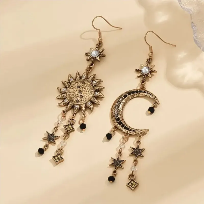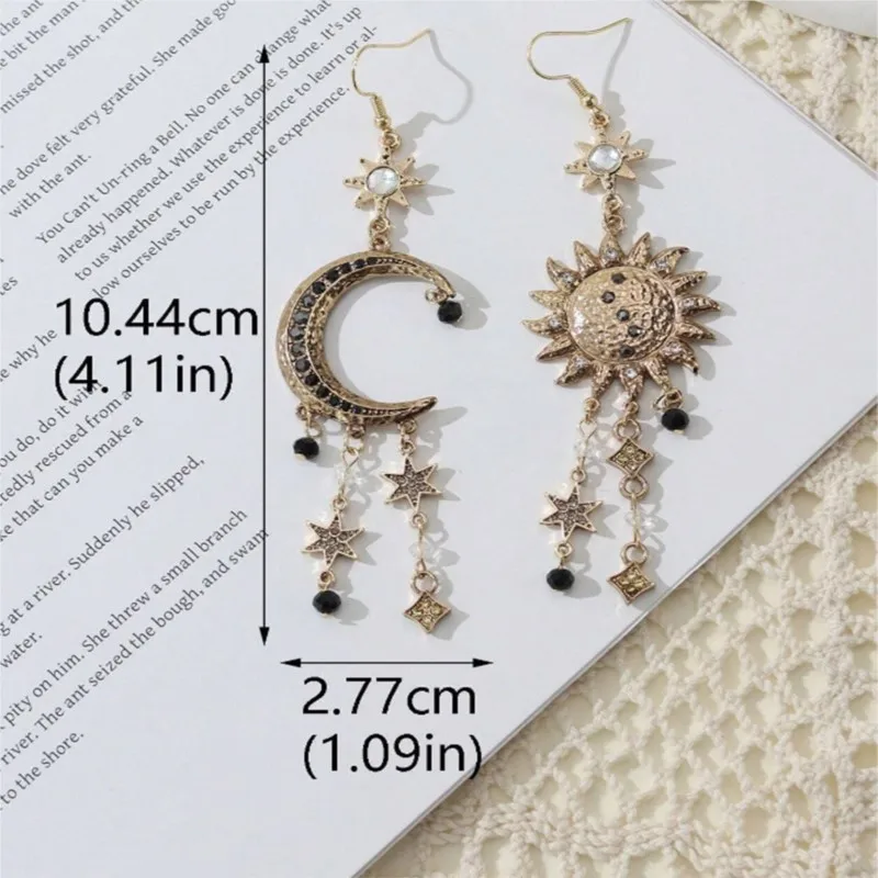 עגיל תלייה בסגנון בוהמי וינטאג' עם שמש, ירח, כוכבים ותליון חרוזים לנשים, תכשיטי מסיבה מבריקים עם אבן חן