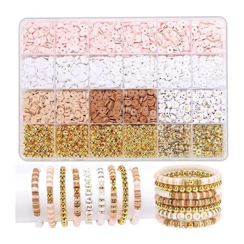 ערכת יצירה לצמידים מחרוזי חימר, 1900+ חלקים - תכשיטי חברות עם חרוזי אותיות מוזהבים לנשים - מתנה מושלמת ליום הולדת