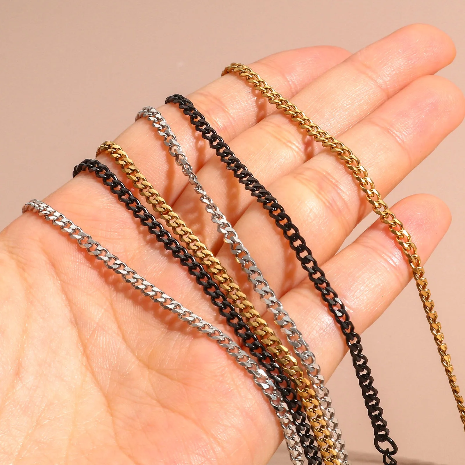 צמידי פלדת אל-חלד איכותיים לגברים בצבע ריק עם שרשרת קובנית פאנק על היד תכשיטים מתנות מגמה