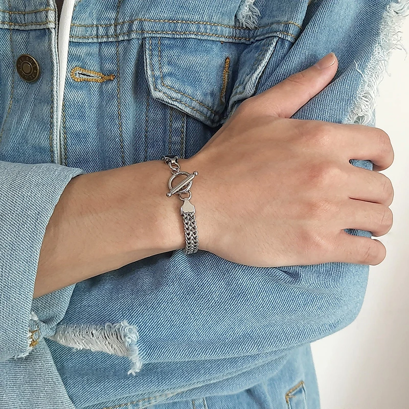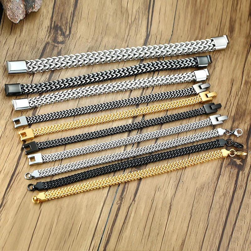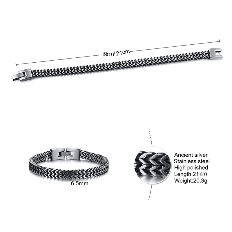 צמיד גברים רטרו של Vnox, מתכת מגניבה עם זנב פוקסטייל ושרשרת פרנקו, מתכת נירוסטה מחוברת, קישור קורבן פאנק וינטאג' תכשיטים