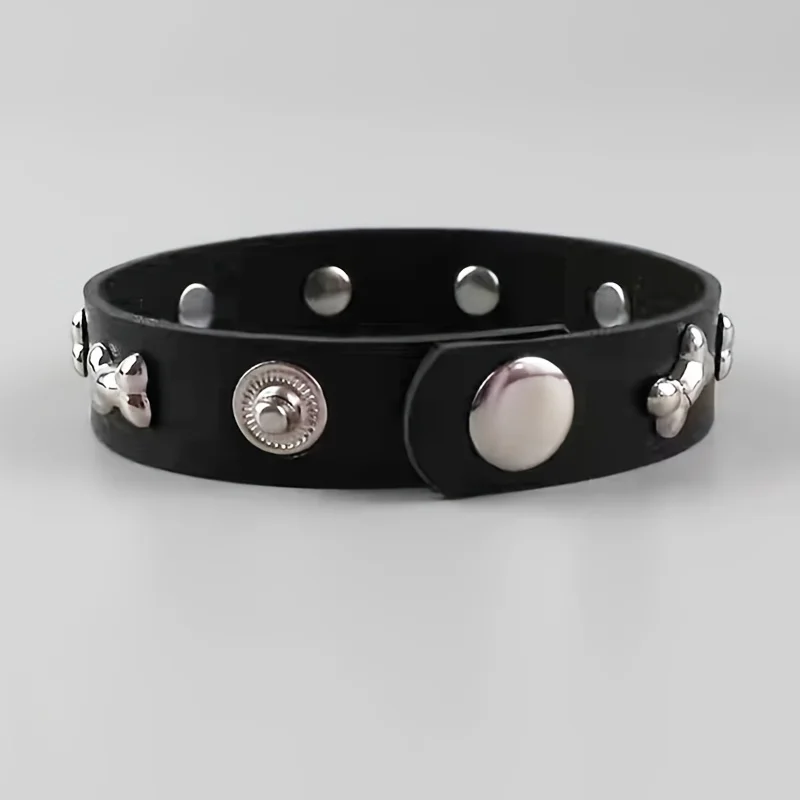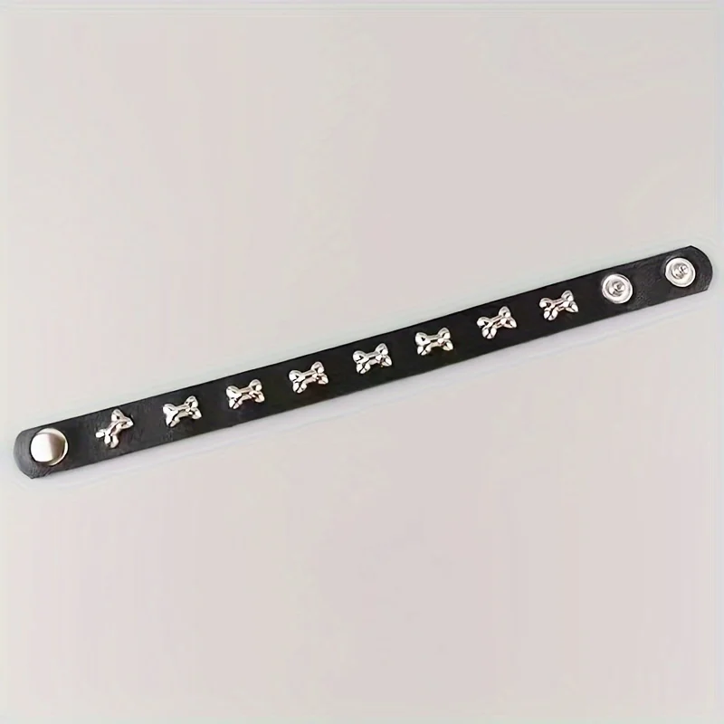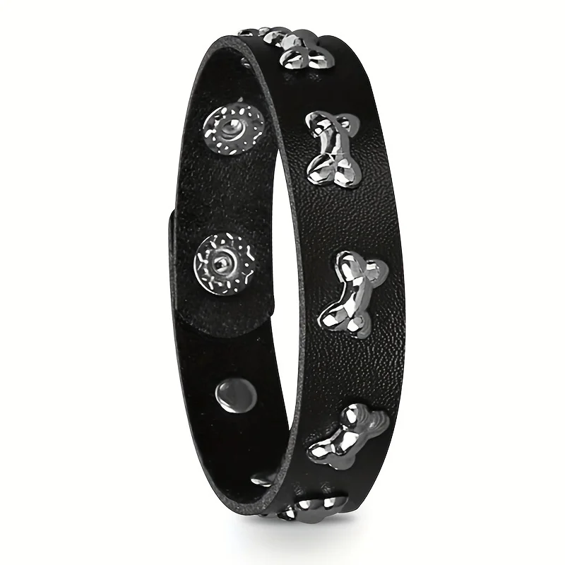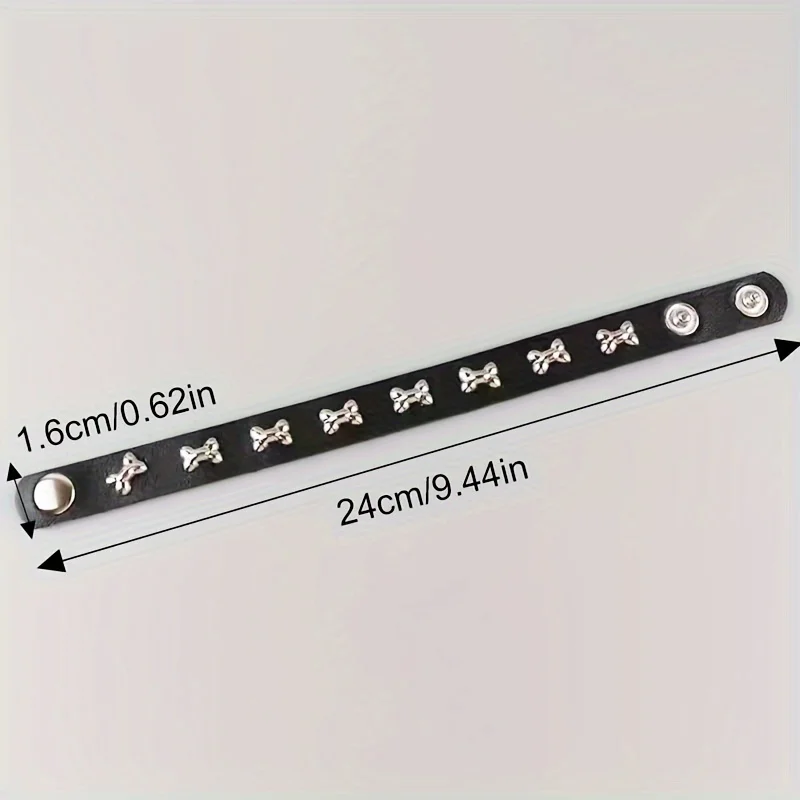 צמיד עור PU שחור בהשראת פאנק עם תליוני עצם כלב - מושלם ללבישה יומיומית ומסיבות הלווין